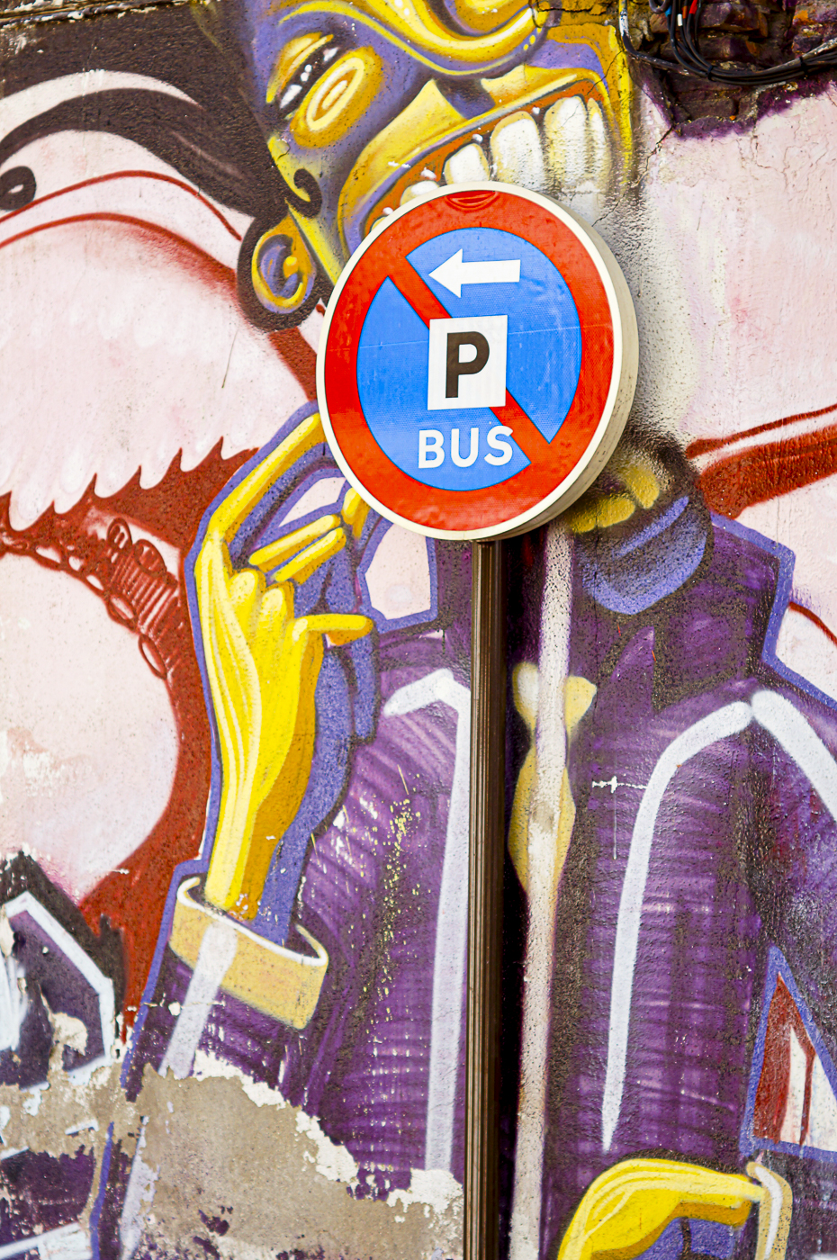I'm not sure whether or not the mural was painted with the sign in mind. It looked older than the sign but perhaps there had been an older sign at the spot previously?
