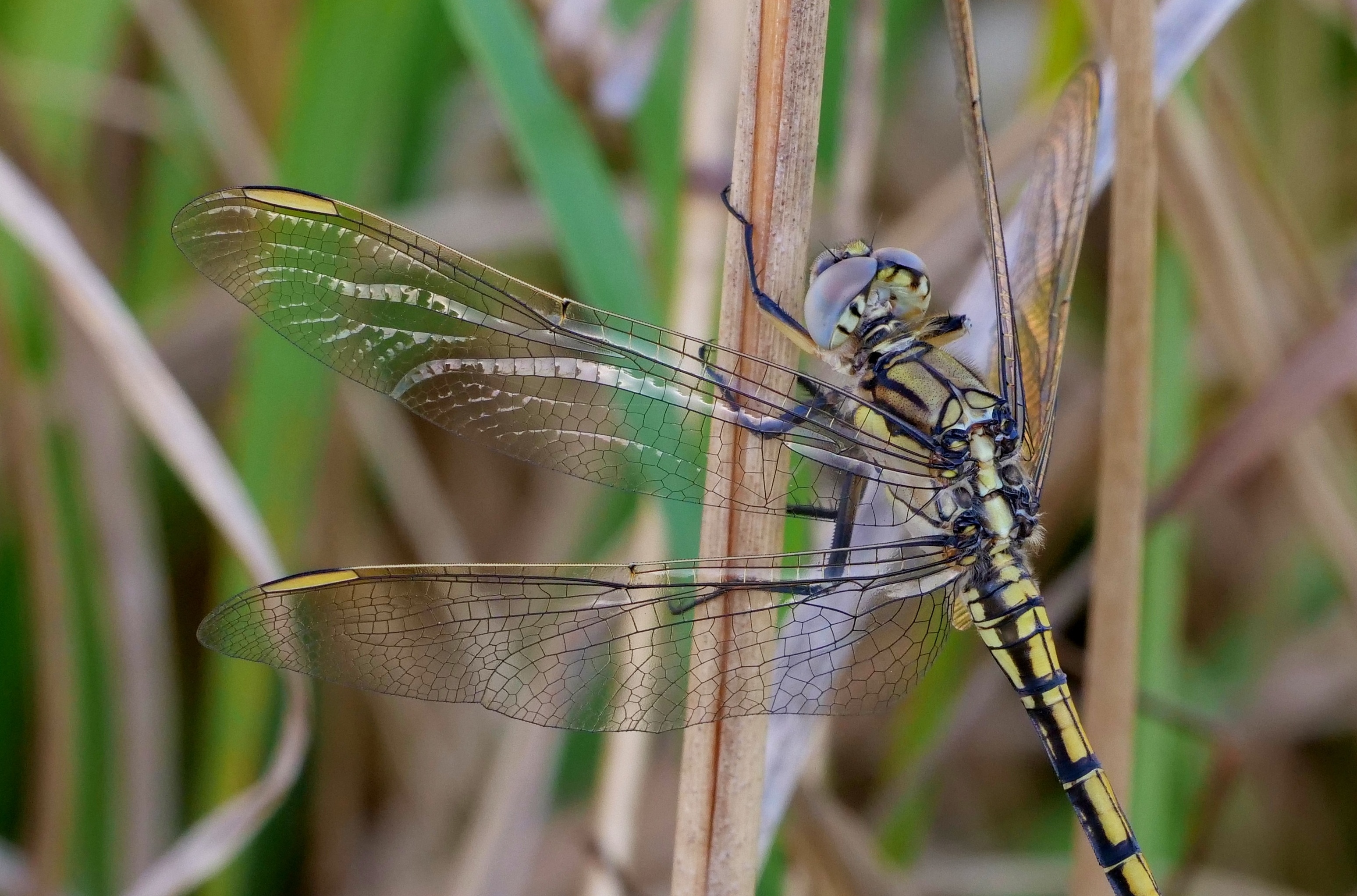 That dragonfly is beautiful even without the rest of his tail. I am of mixed minds about the border. I see its purpose as you described, but it feels too heavy and too green. I tend to favor digital borders similar to what I'd do with a print, which is set a whitish matt around it, and a modest black frame around the matt. For a routine digital display without a pseudo-matt, a very thin black border can give an image a more finished look. But by all means keep experimenting, and employ what you find appealing, he is your dragonfly and you've matched the color of the frame nicely to the photo.