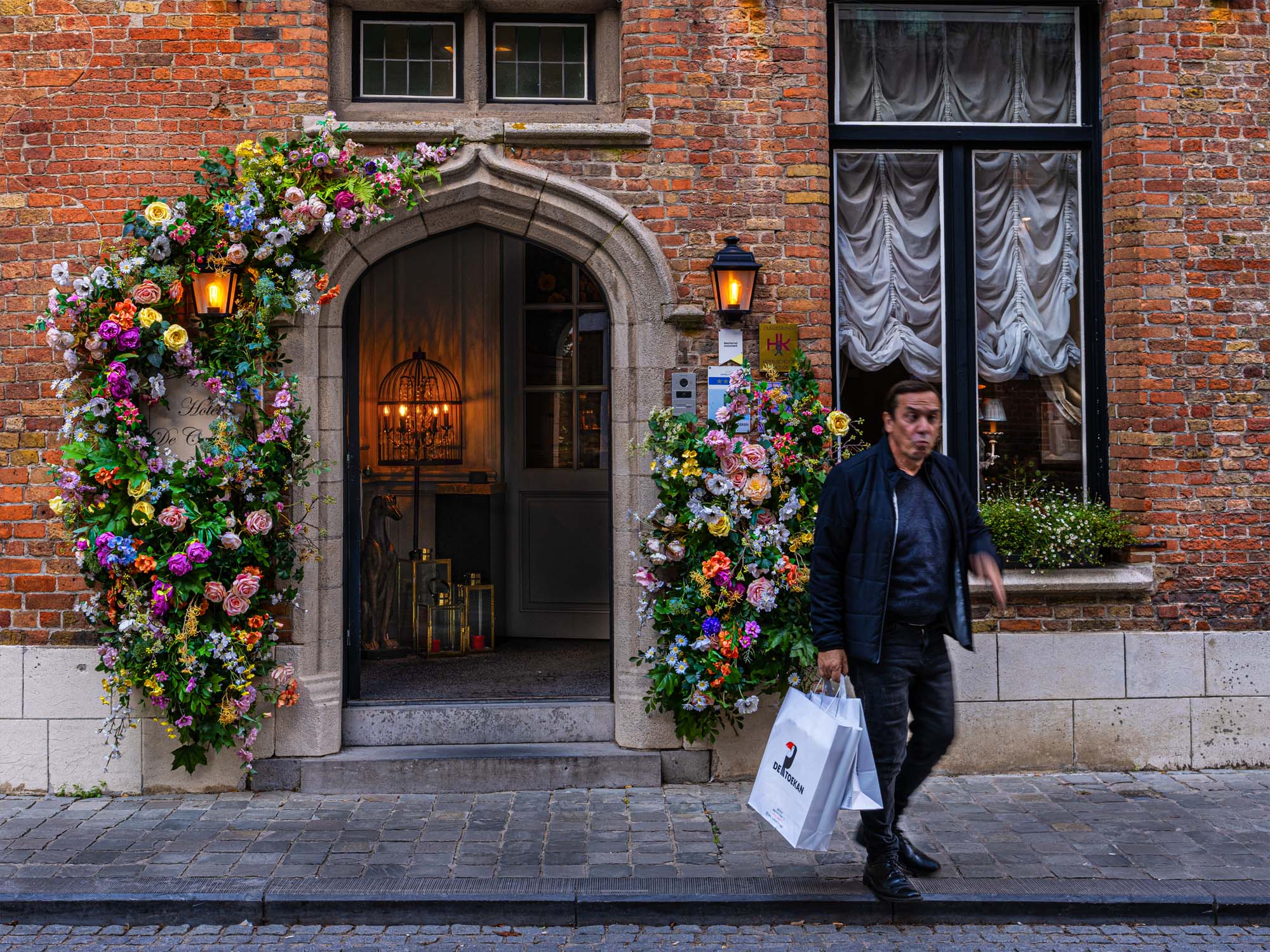 As Arvo has pointed out, the guy you got didn't do you any favours. You could raise the shadows in the doorway a little but I'd still keep it darkish to catch the depth and warmth. If I got frustrated with nobody cooperating for my stakeout, I might have tried something different and moved in a lot closer on the right hand side. There are some useful vertical on the window/and blinds and in the vertical positioning of the flowers and lamp. I might have held my camera in portrait mode, put those elements into one frame and waited hopefully for someone to walk across.