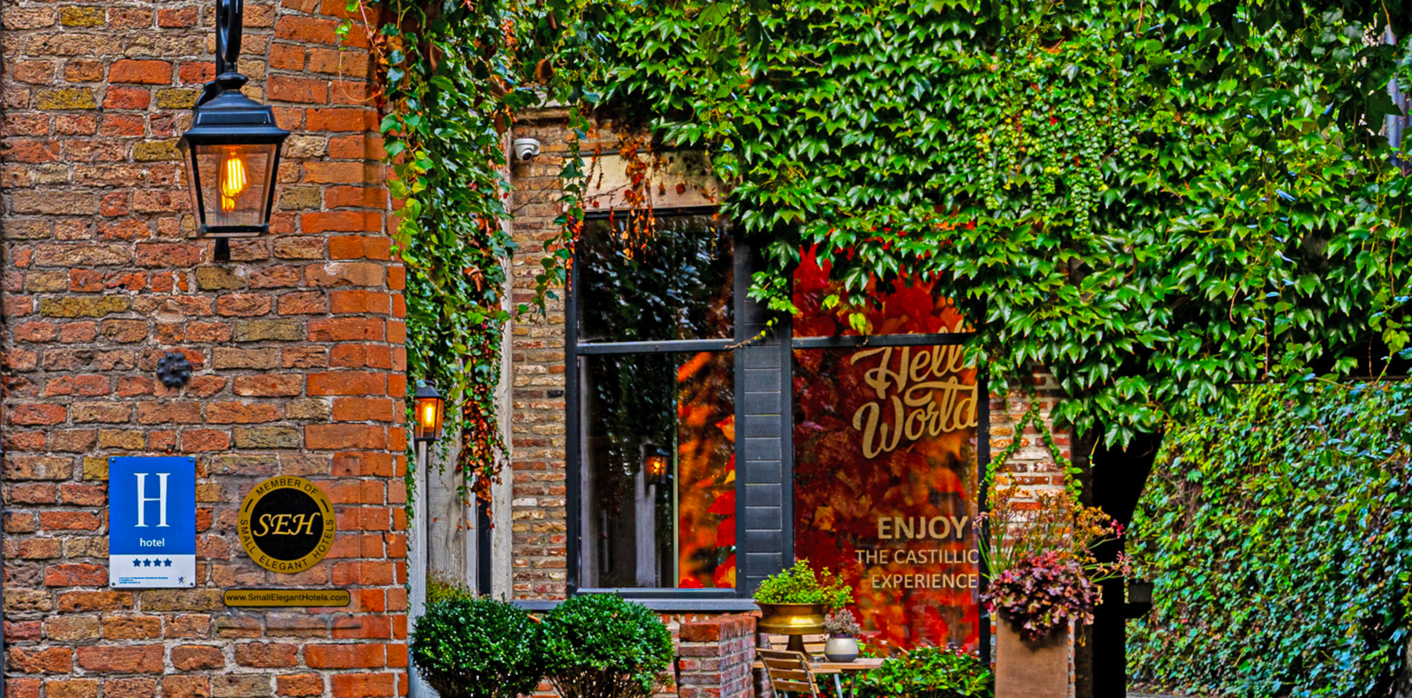 Your camera is giving you plenty of small detail when the image is enlarged. Here's another crop idea. I like the "small elegant hotels" sign. You could use it to make a statement about the hotel with a glimpse of the place. Something like