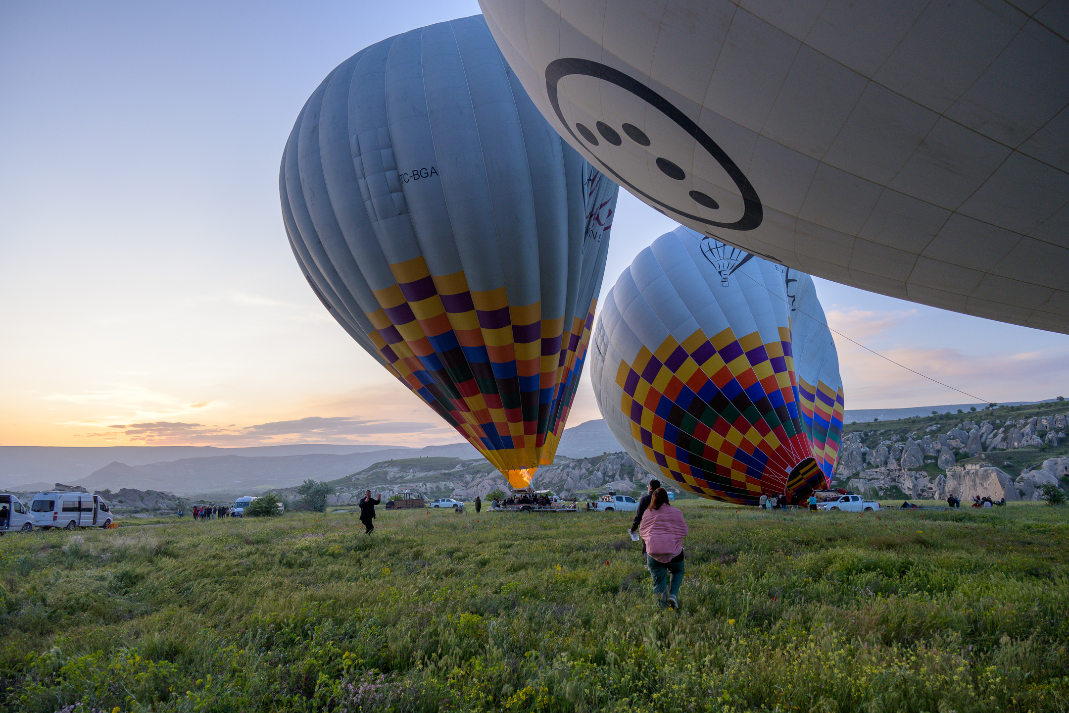 Nice photo essay of a balloon lift. (I think the first/second are duplicates). Lovely landscape for a background, and a rather nice sky too. The third is my favorite because of the depth of the scene and the lighting.