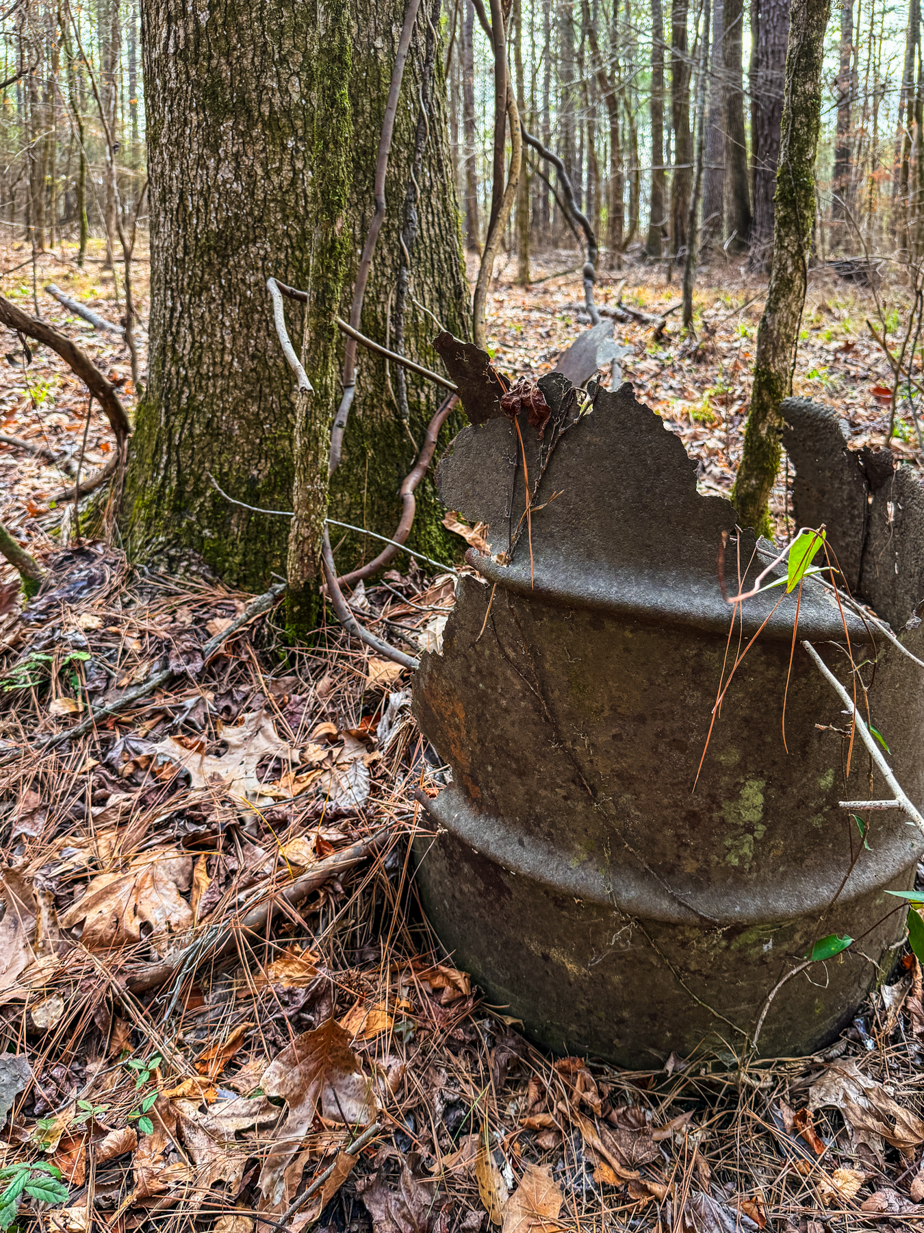 The next clue was this barrel. There's actually two, one more dessicated, and 3 clear gallon jugs that I took to the house. (Moonshine?)