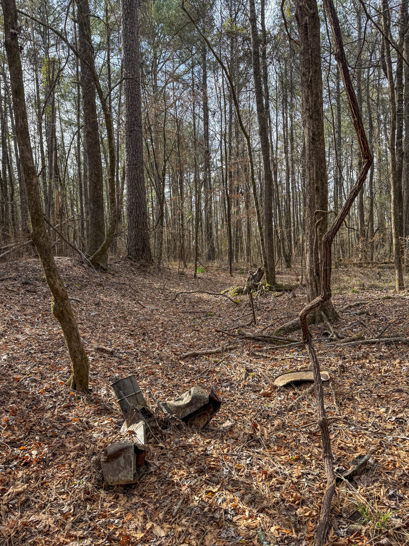 My land is a share of a small family farm in Mississippi that was sold to my great great grandfather in 1830, soon after the government stole it from the Choctaws and set them on the trail of tears. It has been in my family ever since. It was occupied by my ancestors, possibly by some slaves, then by various farm workers and sharecroppers and foremen who had their own homes and croplands on the acreage. Since I got the land myself a few years ago, I've been trying to reconstruct what was here before my time. The cropland is reforested now (much was always forested), so it's rough going in the hills, but fascinating. Around Christmas I stumbled into an area I'm sure was inhabited, and I'm trying to understand it. I'll share my journey. Go along if you'd like, offer any insights you discover; don't feel you have to comment on particular pictures but moreso on the overall effort to uncover the stories of the forgotten people who lived here.