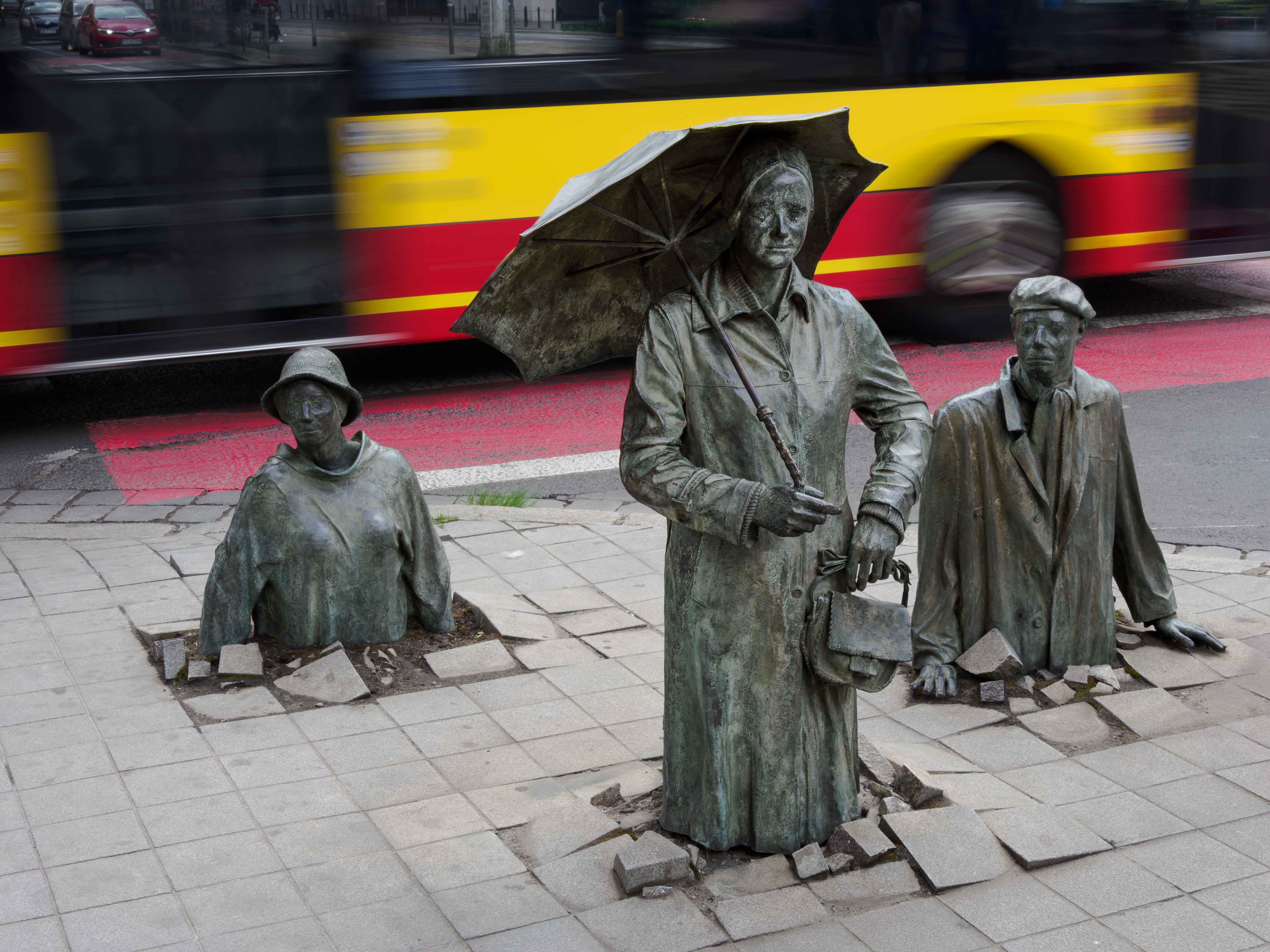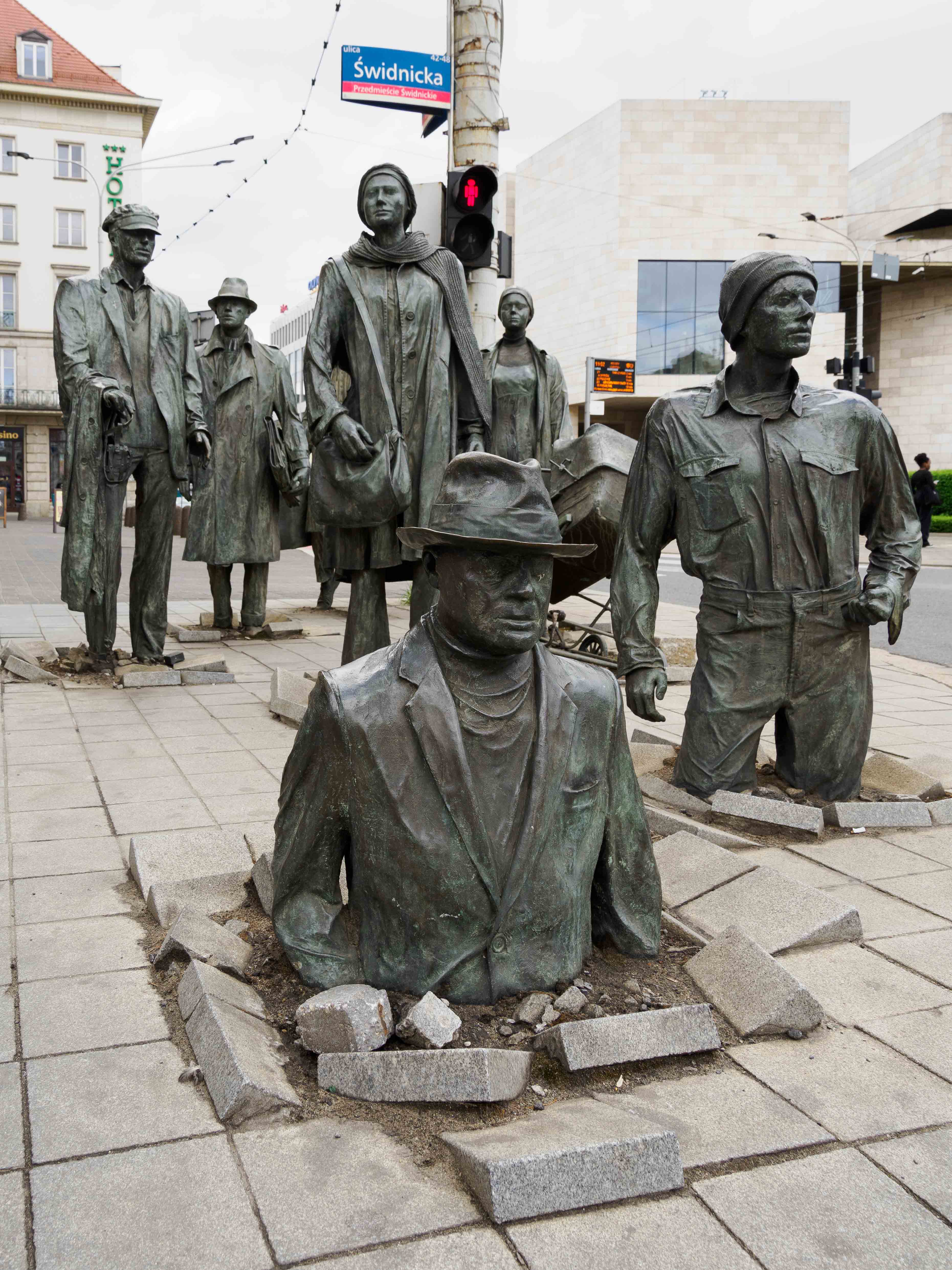 Not far from the Central Station in Wroclaw (aka Breslau) in Poland there is a cool sculpture. On one side of a busy crossroads a group of ordinary citzens sink into the pavement and others emerge out of the pavement on the other side of the road. Its title is "Transition", but there is no official explanation, however it was opened on an anniversary of martial law in the 1980s in Poland, which lasted a few years, so the usual interpretation is that people disappear underground during a government crackdown and reappear when relative freedom is reinstated. In any case it is visually compelling.