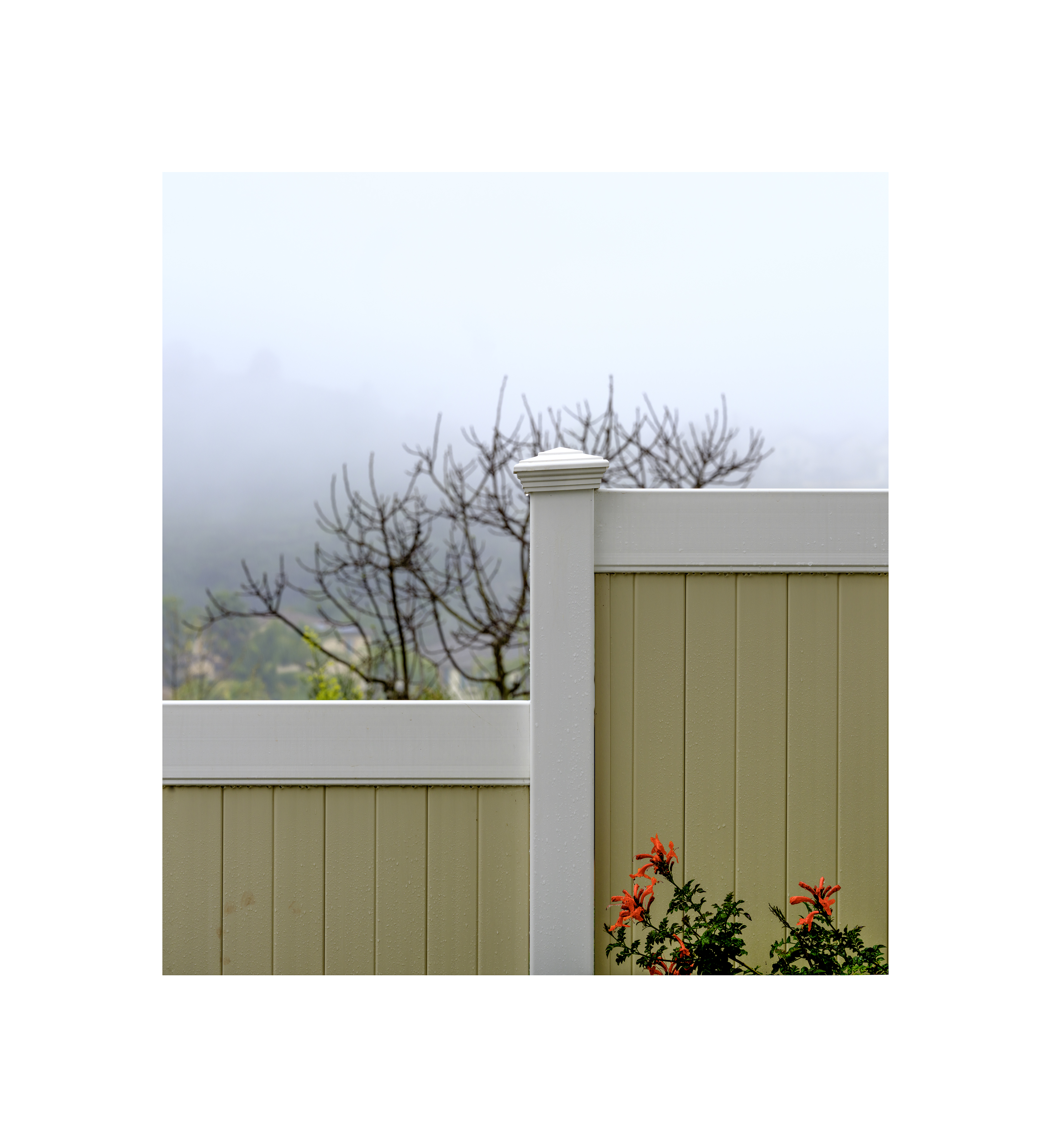 I like the combination of the muted colours of the fence and the fog. I can see why you decided to photograph this scenery. I am a little confused about the red flowers though, because red is such a powerful color and take up a lot of attention but they are so low in the bottom of the frame... maybe 2 other frames would have been possible here - going lower and shooting the flowers against the fence with the misty background above or going more to the left and shooting the tree over the fence against the misty background... just my 2 cents ...