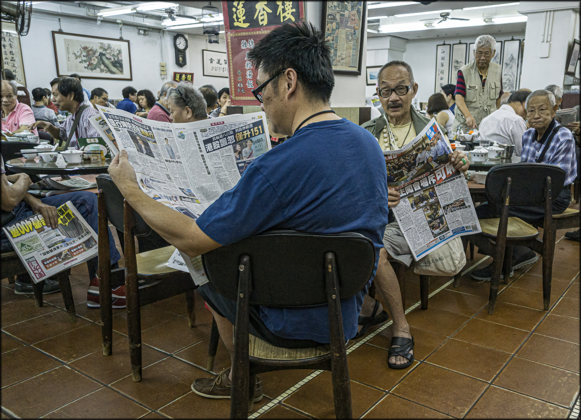Tea and newspapers. Who needs internet!?