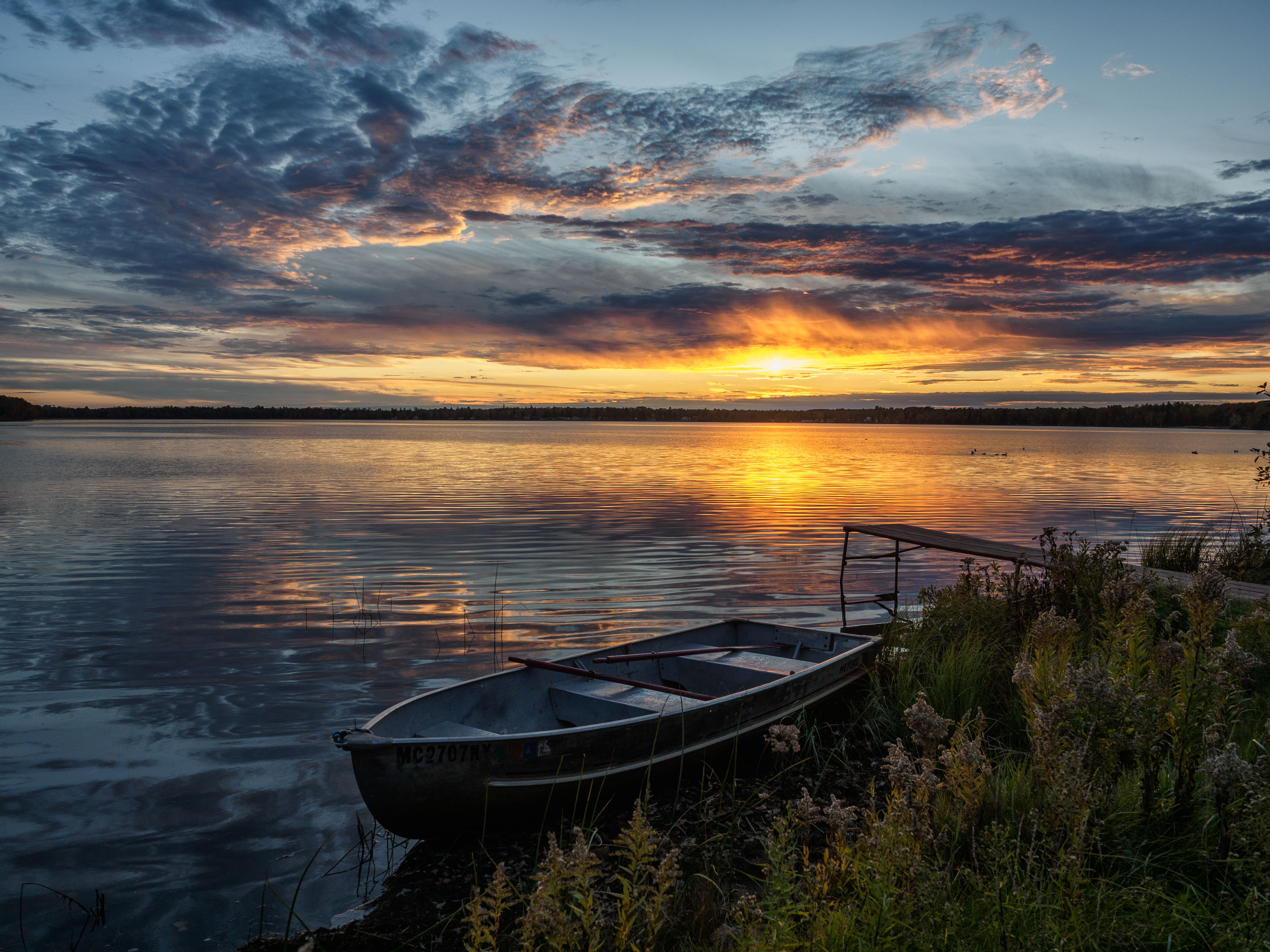 Very amazing shot, full of atmosphere and calm. That sunset is very captivating in itself. The boat is a bonus, actually a must to fully appreciate the scenery.