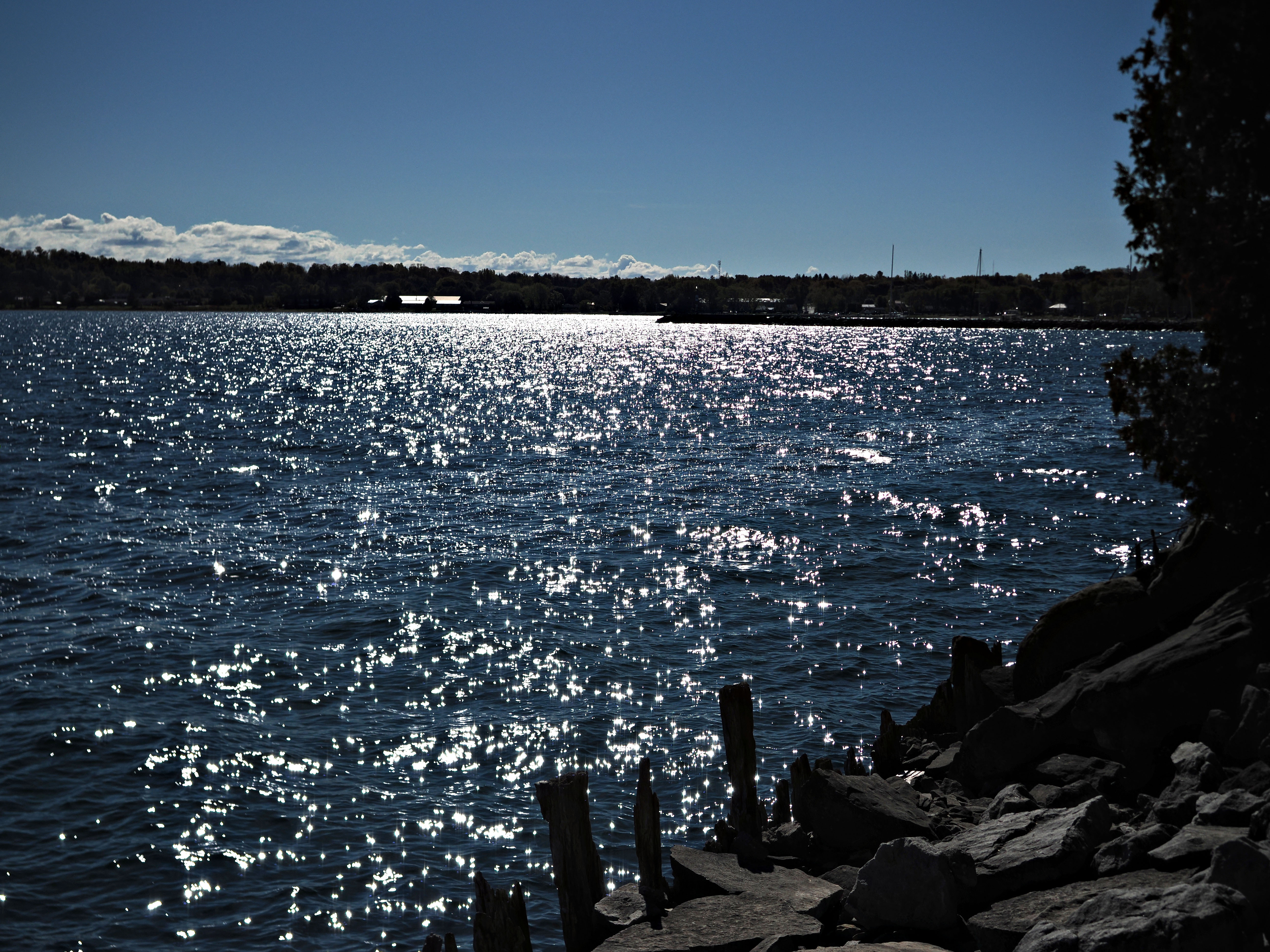Was standing on a shore of Georgian Bay, Ontario and attempted to harness an extreme light which shone on the water surface.