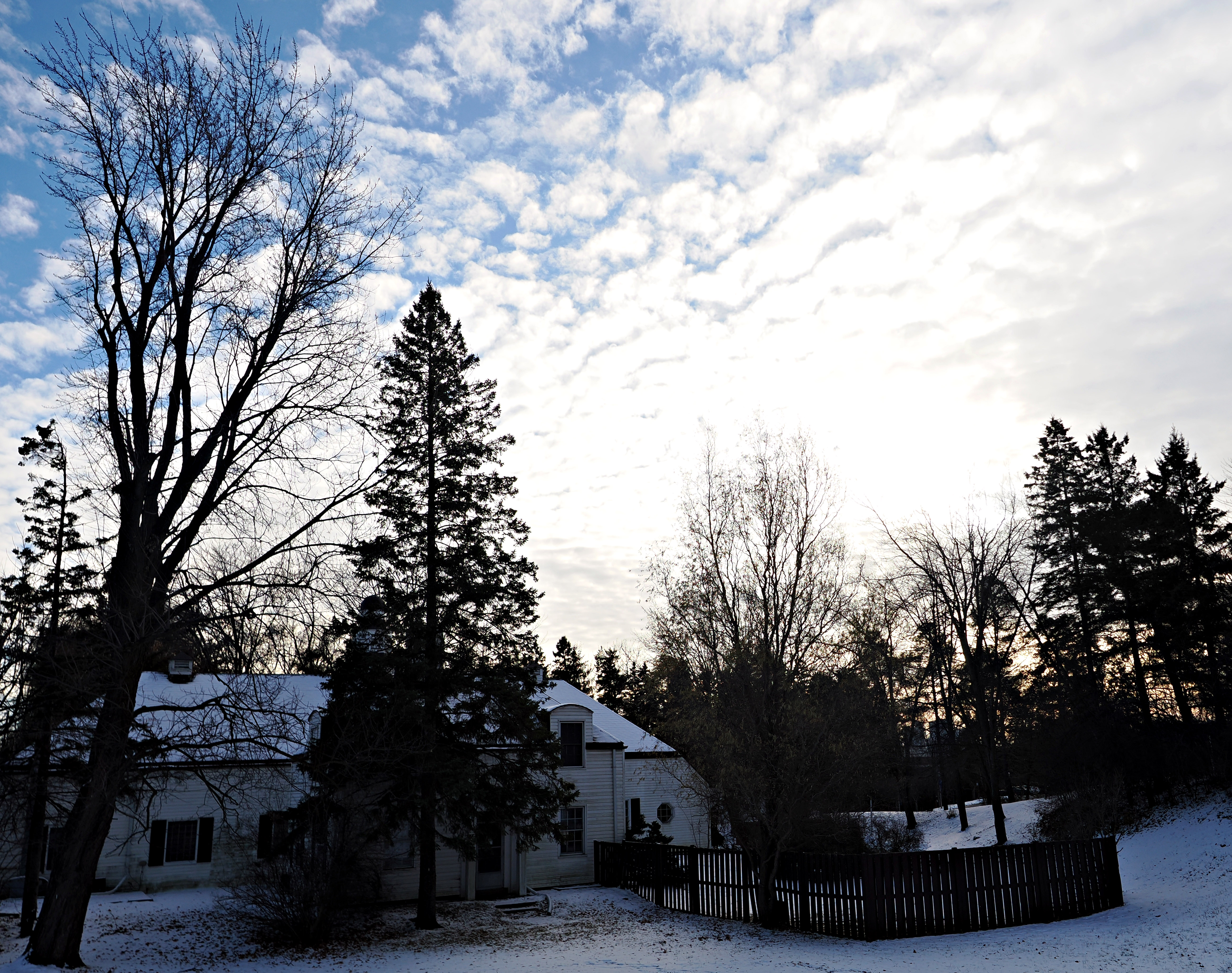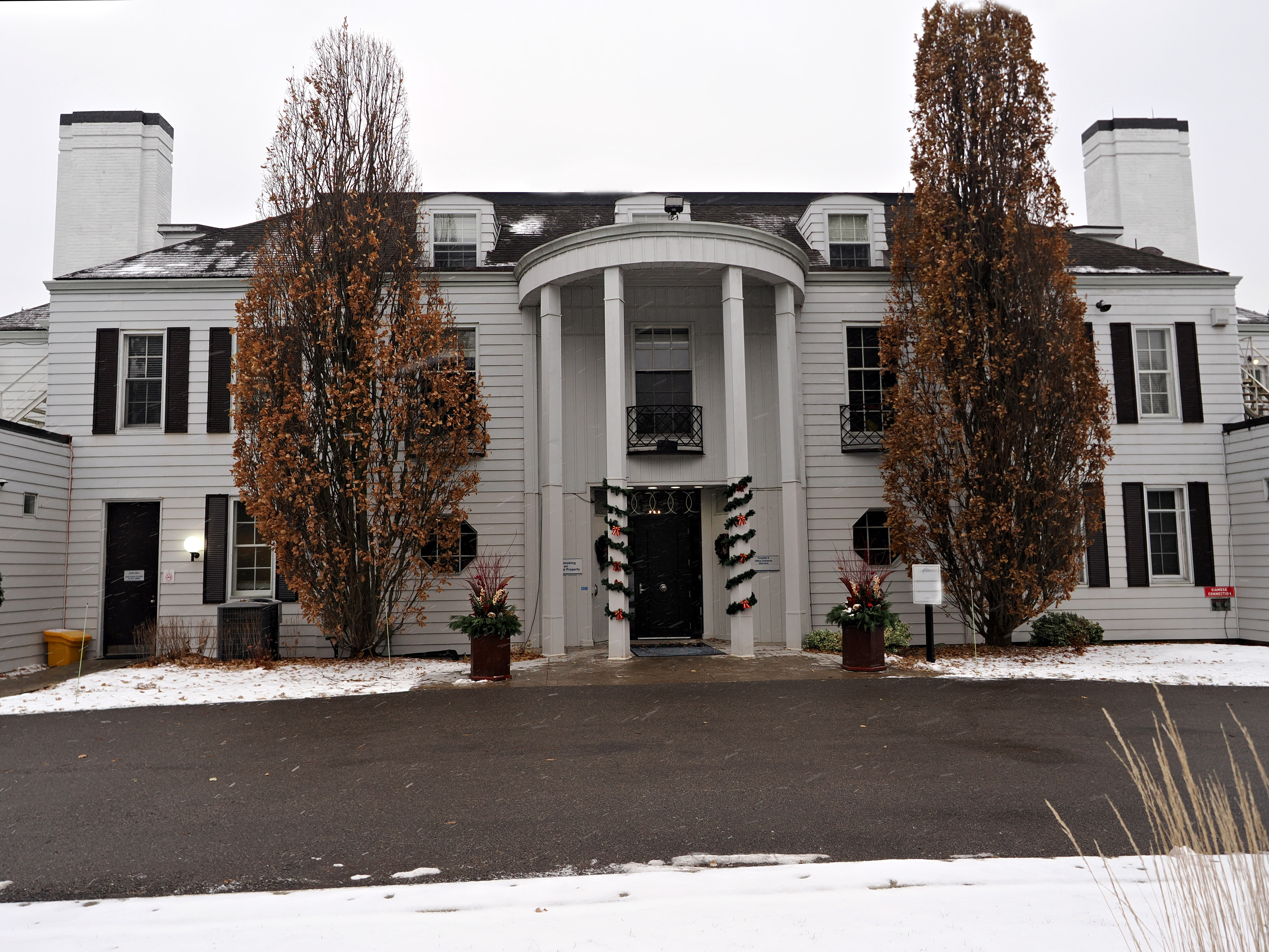 We got a first sign of snow recently. Former estate of a local newspaper magnate from 1930's, small hospital specializing in hernia operations at present..