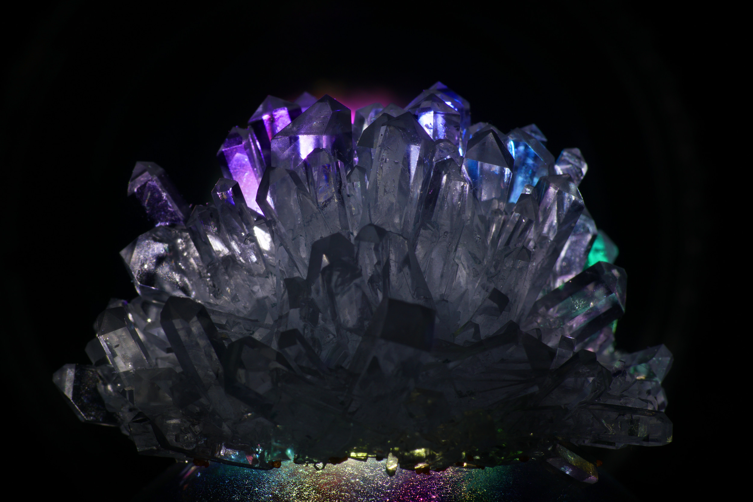 Superb birefringence image. I've seen this with plastic, but didn't know it also appears in crystal. Your enhancement technique reveals amazing colors.