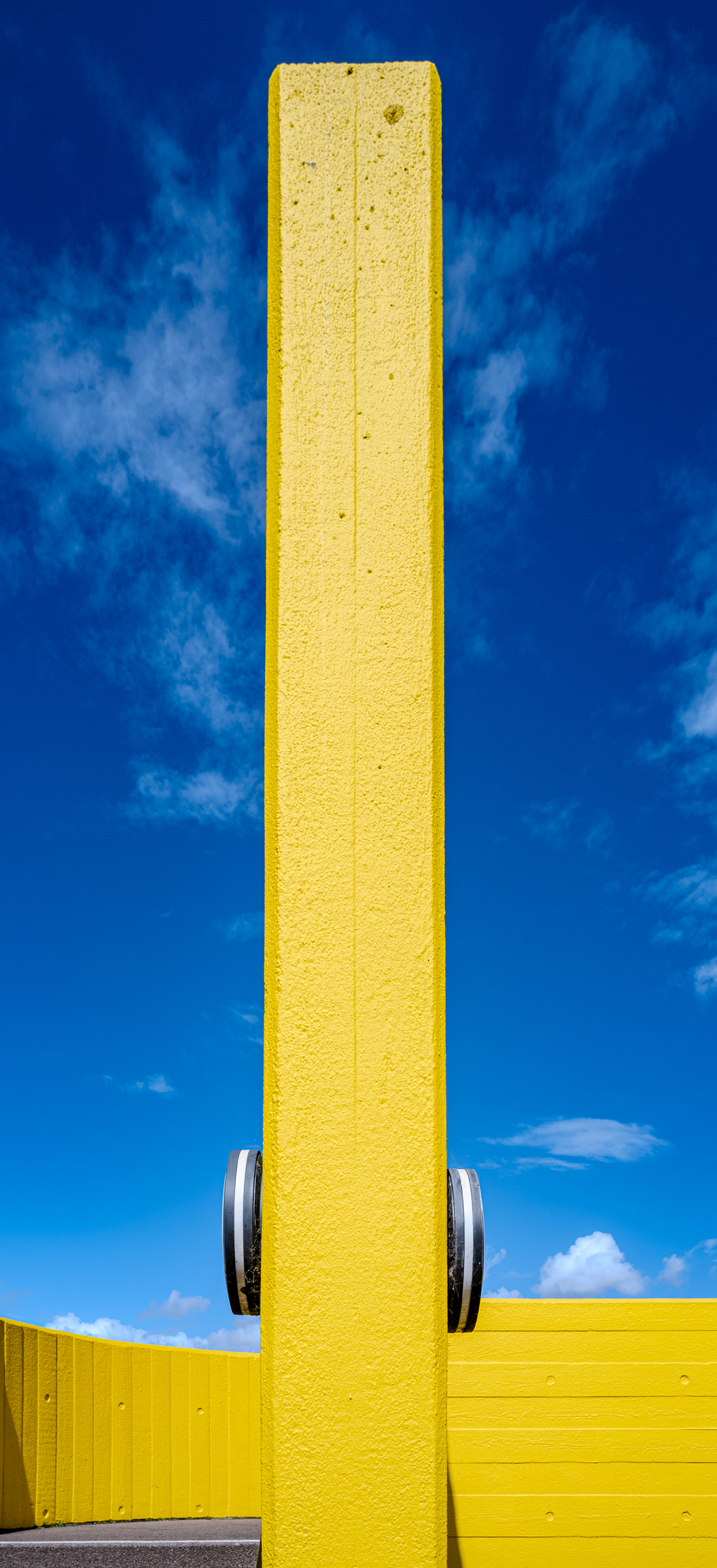 Wow. The yellow and blue are dramatic. They really pop. Excellent abstract. The clouds give just a little "reality" to the scene.