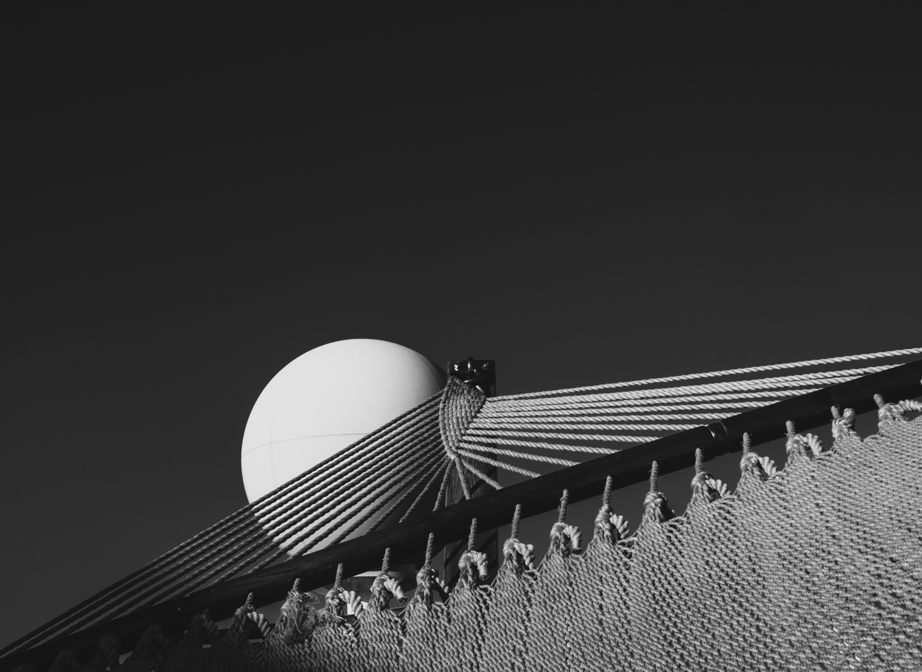 A wild juxtaposition of water tower and hammock. Subject wasn't instantly apparent to me. Cool lines and shapes that look great in B&W. Without a camera I'd be bored stiff on a cruise ship.