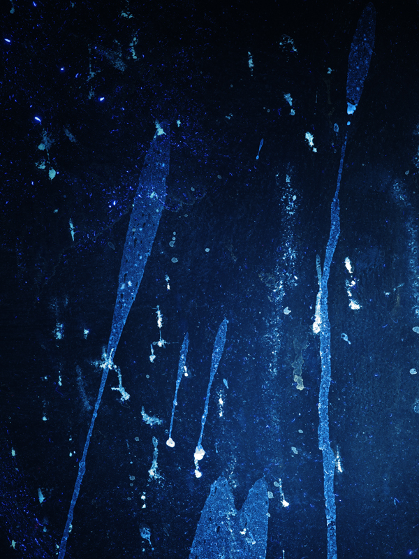 Splatter on an old wall. This is an UVIVF image taken with a stock Pentax 645Z camera with Pentax 645 A 120mm macro. UV light was supplied by 365nm flashlight with KWB1 equivalent filter. A special Tiffen UV Haze #2A was used on lens to block UV light and only capture fluorescence. F8 at 13" with ISO 100.