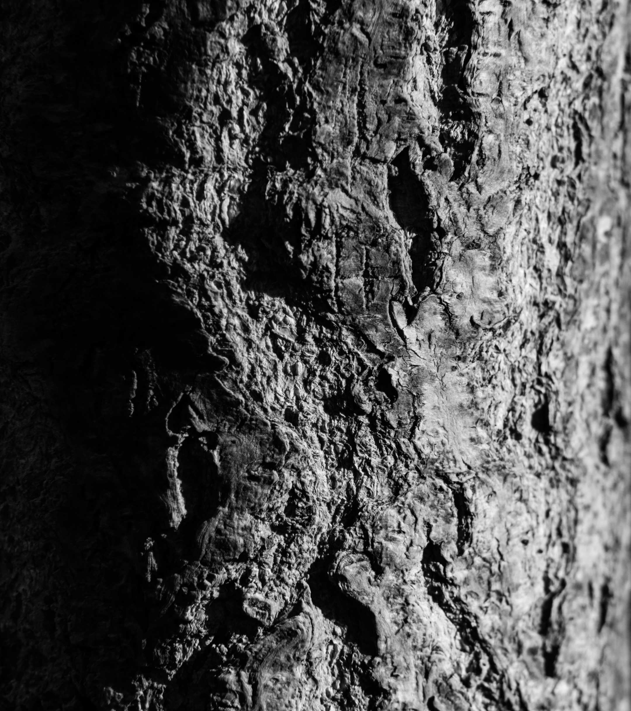 I prefer the cropped version. It pushes the image even closer to abstract and removes things that add little to the image. B&W also helps do this. I always enjoy texture close ups. Was your walk part of a photo club event?
