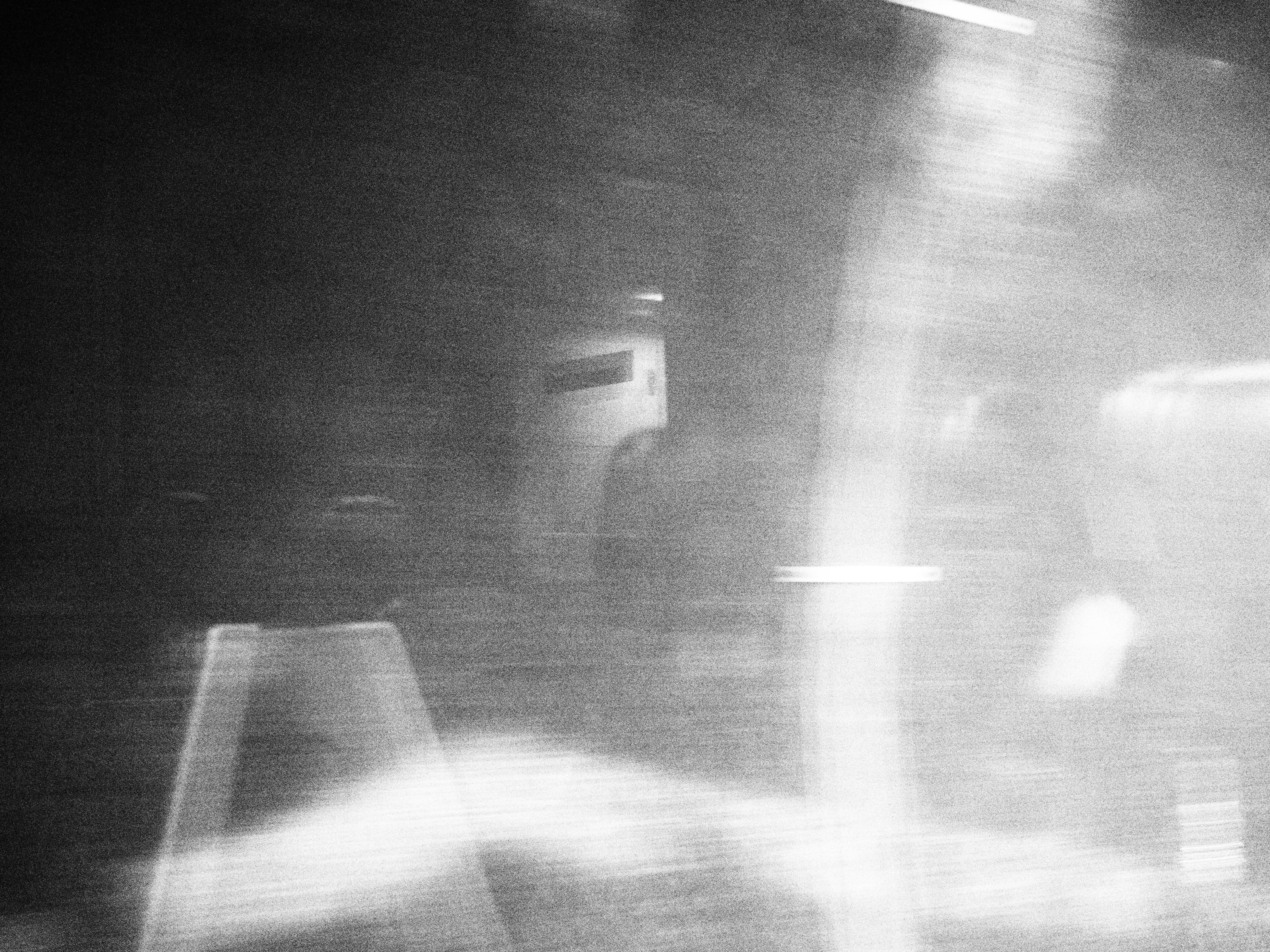 This was taken at the exact moment the train was leaving a tunnel. I was deliberately taking out of focus pictures with a grainy high contrast black and white filter and seeing whatever shapes the train carries me towards next.