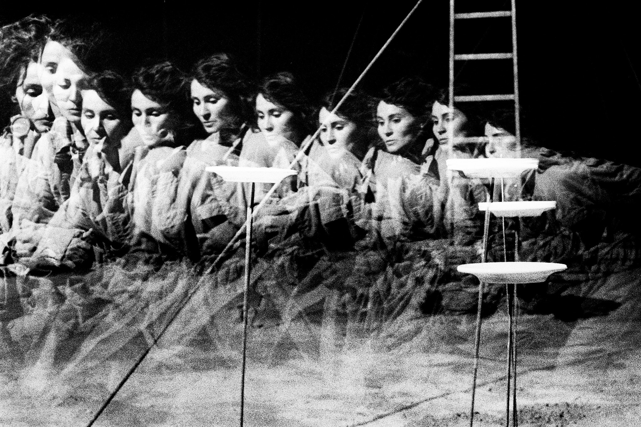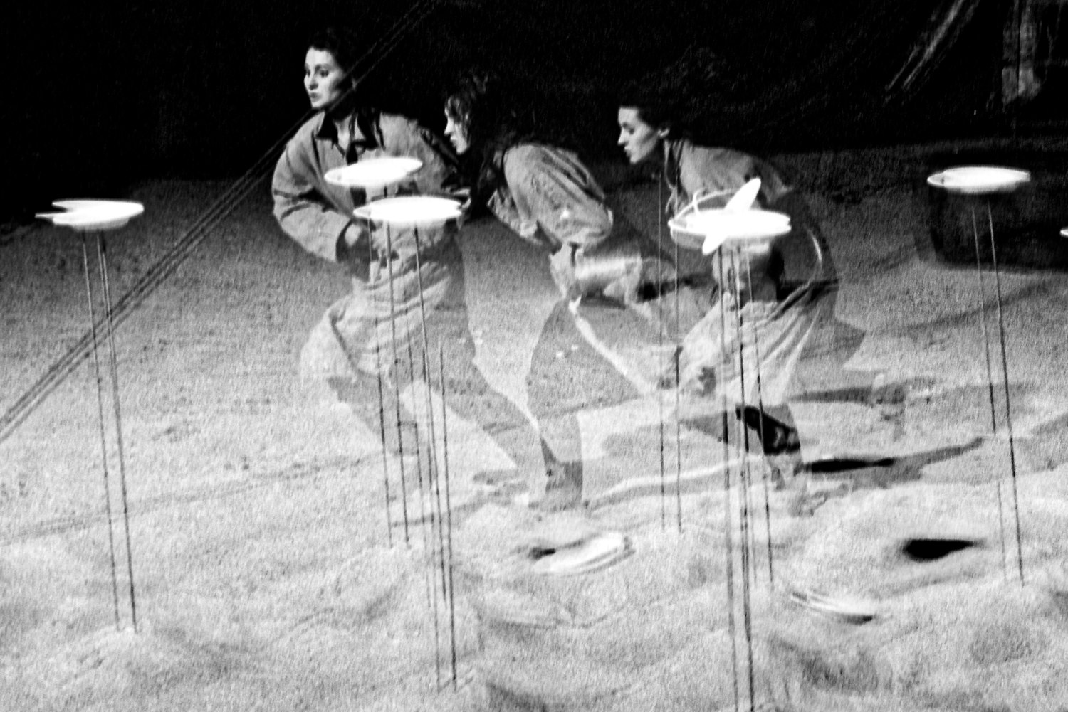 Semola Teatro were a crazy Spanish experimental theatre company, based in Barcelona. I met them in Reggio Emilia, and they invited me to photograph them when they toured in Italy a couple of times. They used my pictures for publicity. Contacts and pictures went back and forth by snail mail in a slower era. The multiple exposures are one single exposure. Quiz: how did I do them?