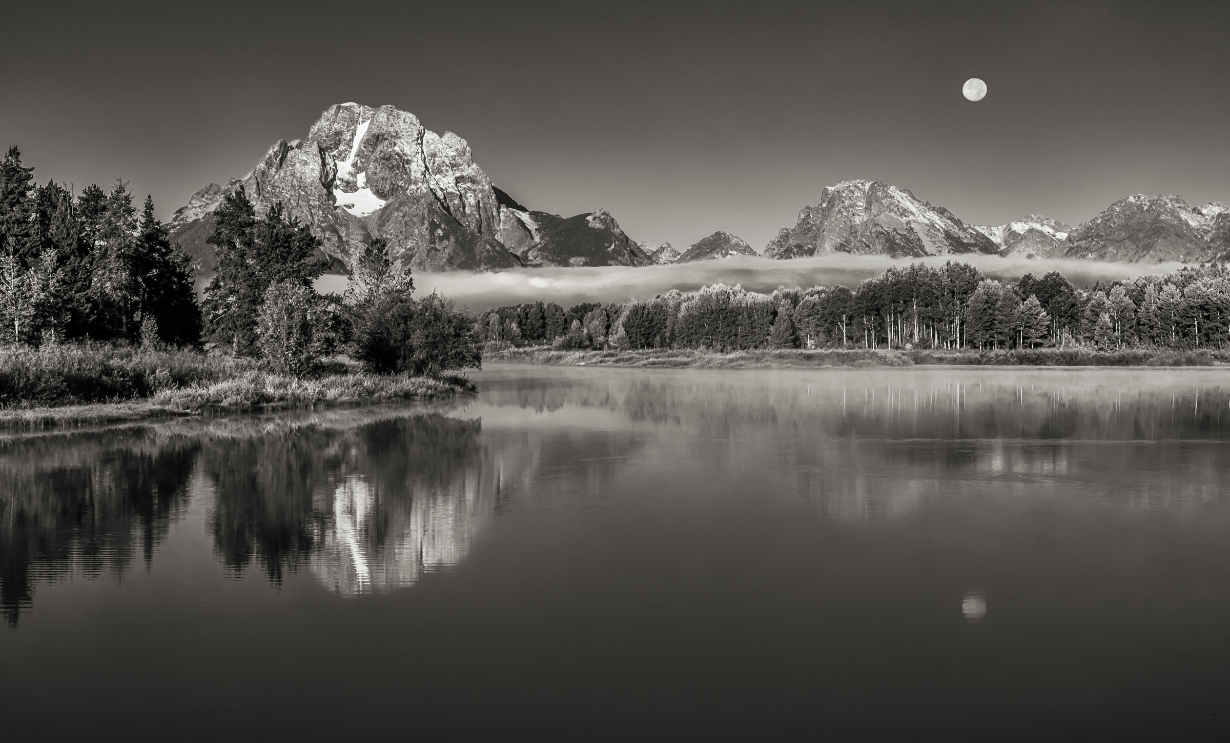 I always have to try iconic landscapes in black and white to see what happens. I took this shot of Mt Moran reflected in Oxbow Bend a decade ago. Lucky to be in Grand Teton when there was a full moon. Sometimes I "see" it in black and white before I start fiddling with settings for the photo, but sometimes I get enamored with the colors (Teton is amazing in fall color) and only discover the black and white later, which is what happened with this one.