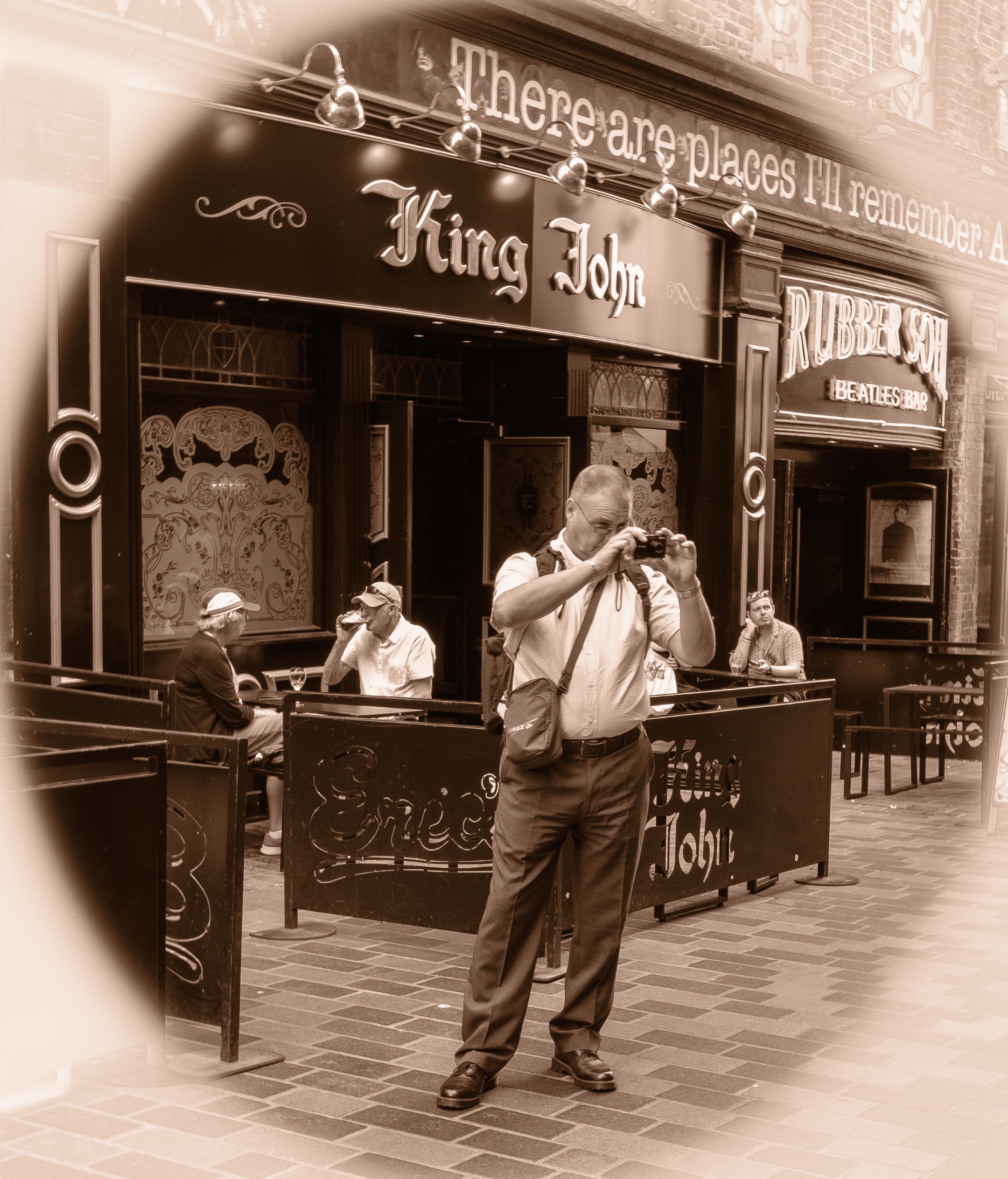 Continuing my "Sepia" old fashioned theme. I was on a photo walk over in Liverpool on Friday and the fuji rep asked us to take some photos connected by a theme. I decided on people taking pictures, but knew I was going to make them old fashioned. What I wanted to do was display a sense of the ridiculous - you can't have photos apparently from the 19th century with people taking pictures on their phone.