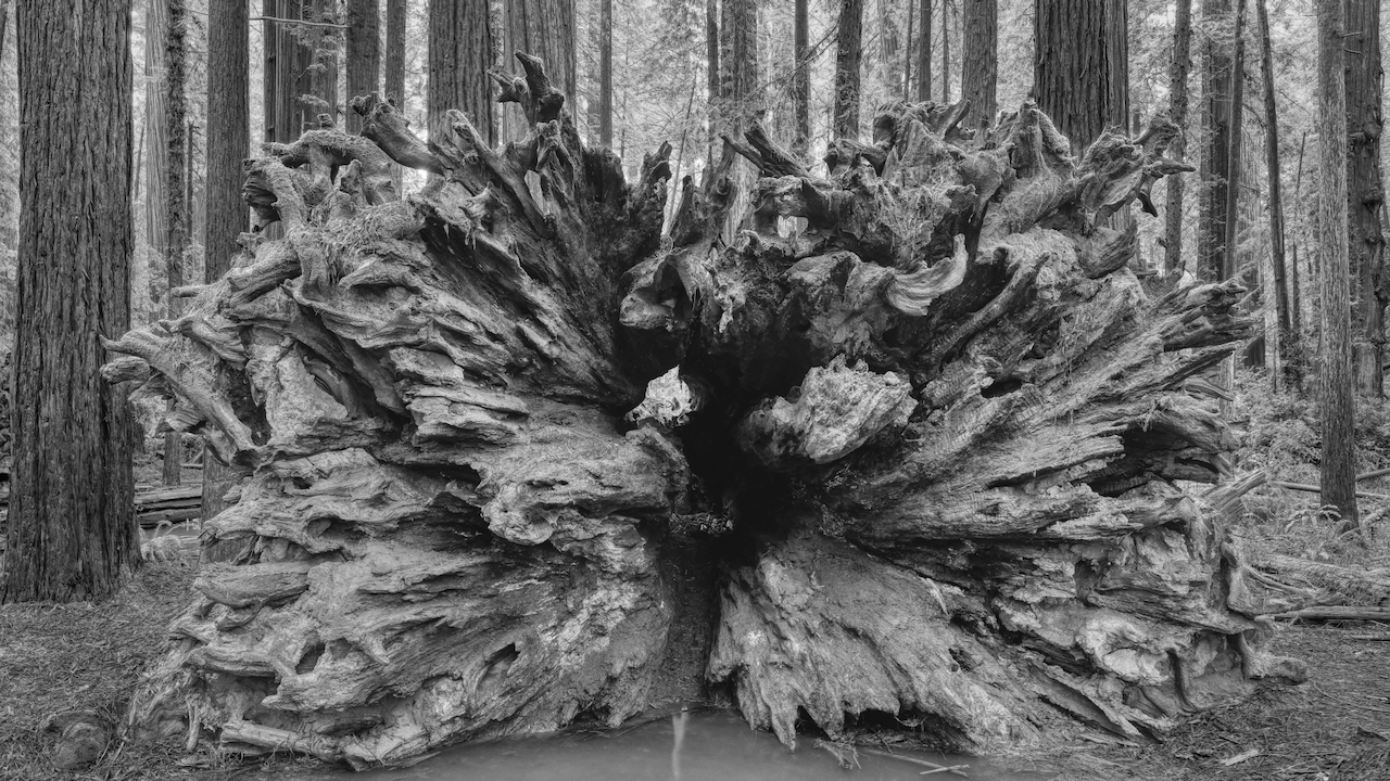 A couple of forest photos. The underside of the stump in a 3 image blend for exposure and focus stacking.