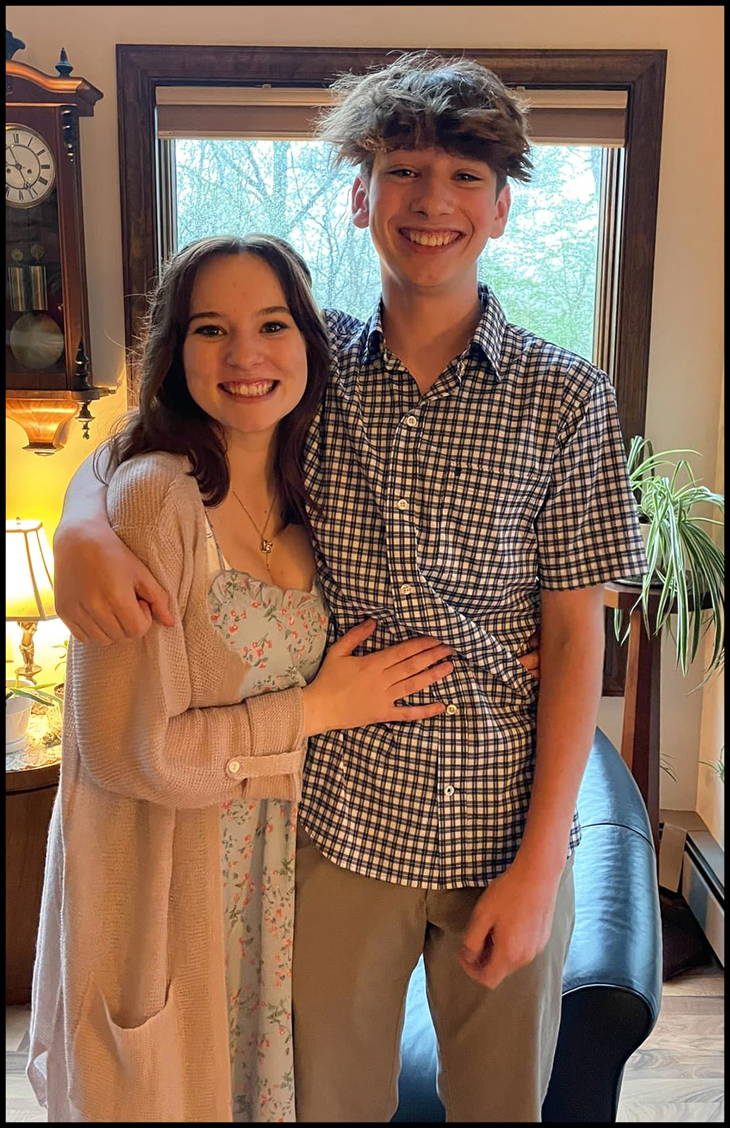 Oldest granddaughter (she is a US Marine vet) and oldest grandson in his goofy "surfer" hairdo.