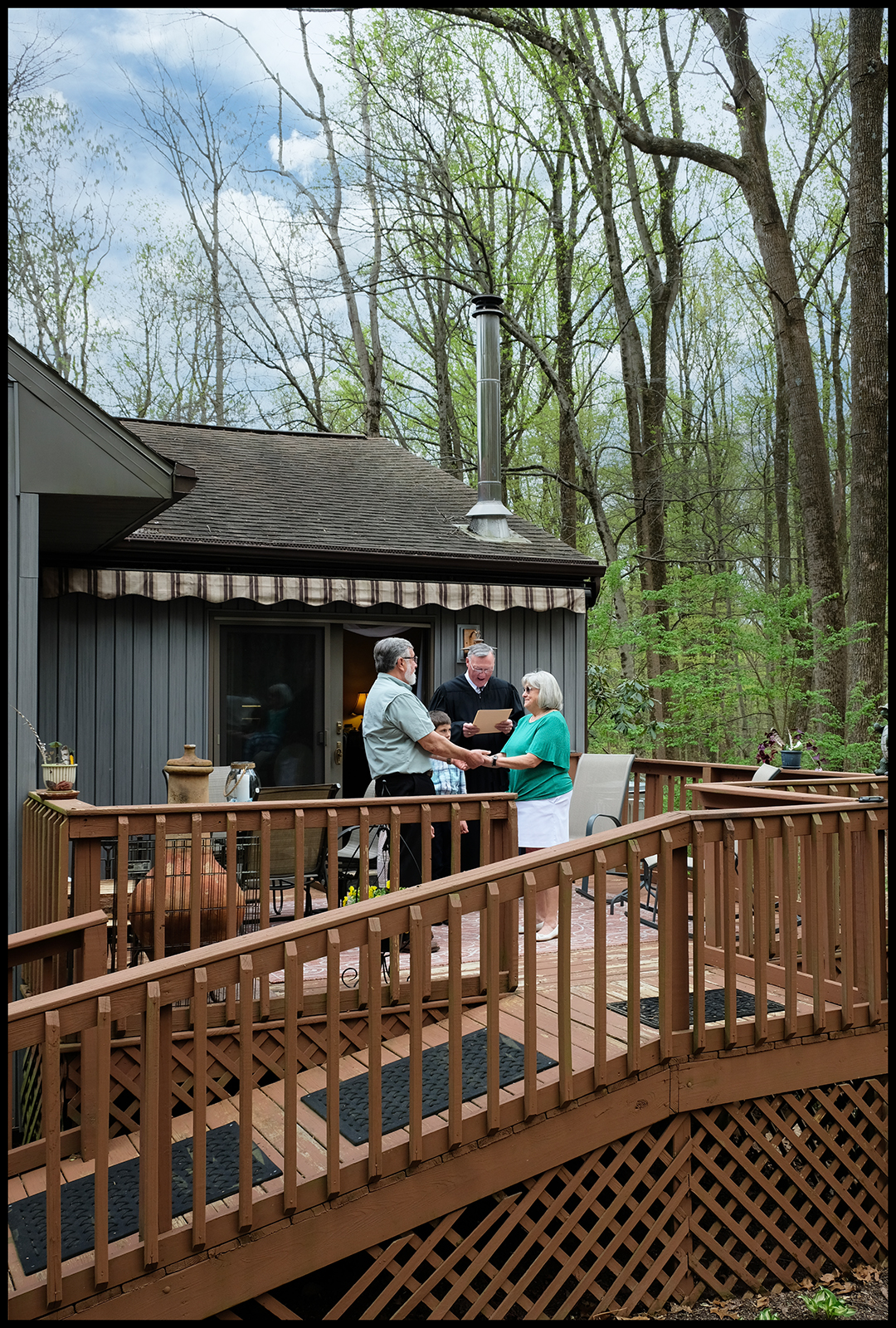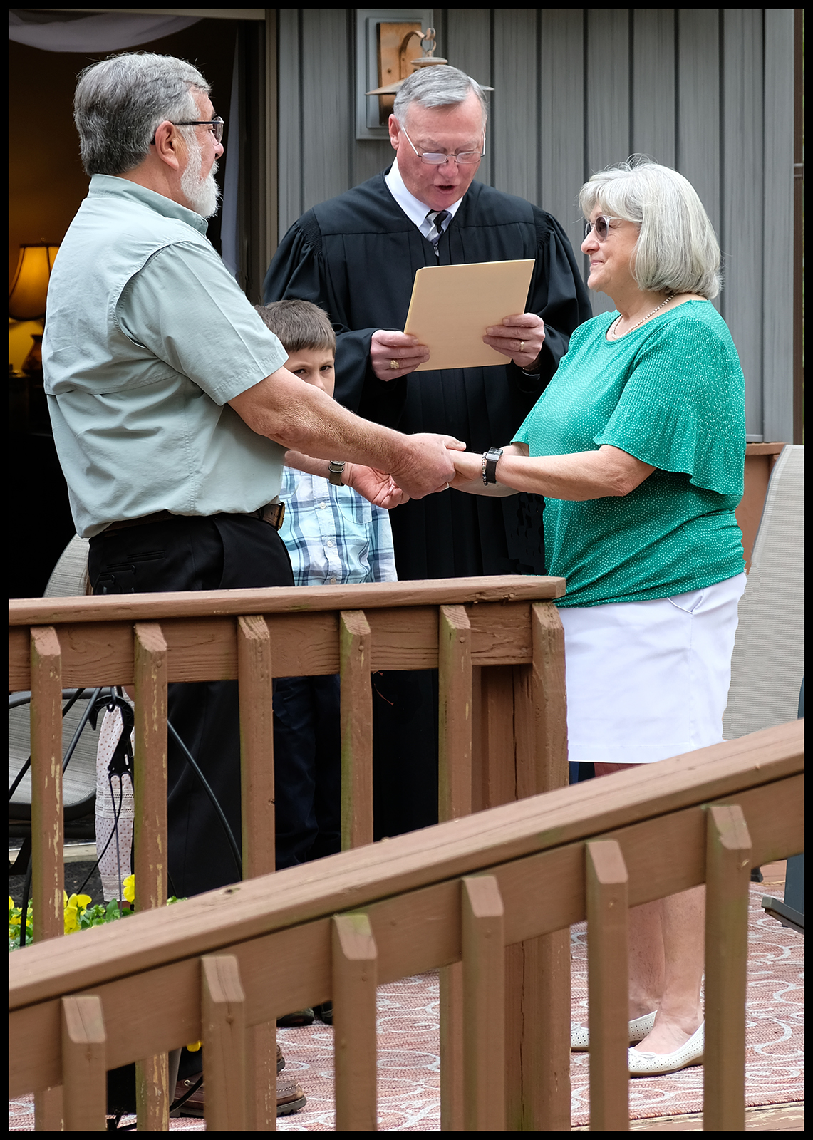 The vows on the deck with a couple of grandkids as ring bearers: