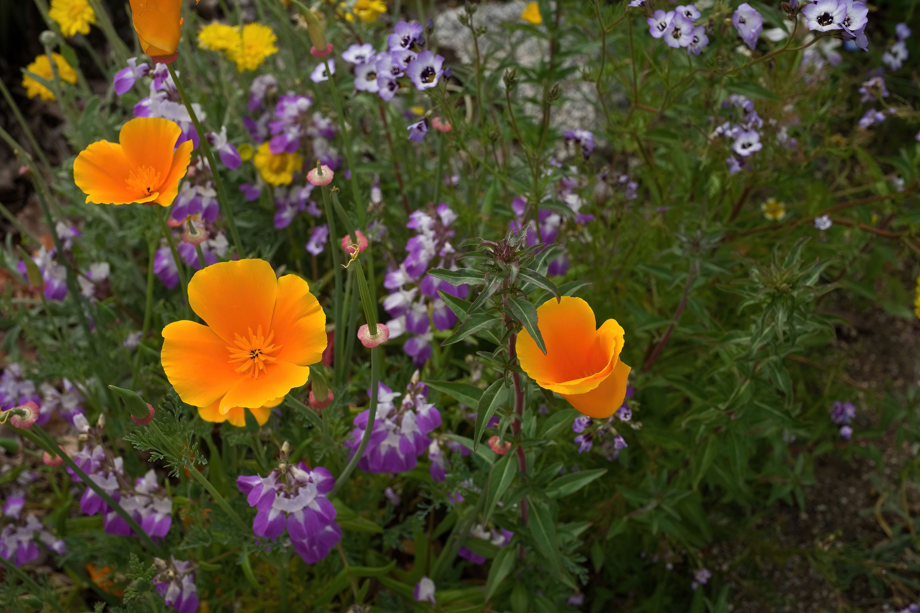 California’s recent rainfall has resulted in vast areas that are teeming with yellow wildflowers. I seem to recall this past week a satellite photo of a small swath of California that showed a very large land mass of yellow. The first 2 images are a small representation of what that yellow is. The following ones are of interest. One of our 4-streets-over neighbors decided 3 years ago to remove all their greenery and put in only native California plants. This year it yielded an amazing yard…. Small but packed with color. Images of the yard were taken with an X-H2 w/30mm macro and the field with an X-T5 w/70-300. Don’t ask me why I own both. Processed with X-Transformer, LR, sharpened with Topaz AI, and downsampled to under 4K with PS. These almost need a big screen especially the yellow fields.