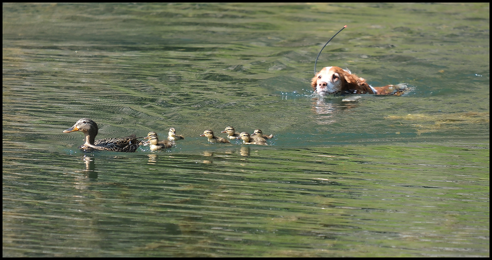 Just to let everyone know before I get a lecture, I would NOT have let her catch any ducklings, even if she could (they swim much faster than she can). The dogs always want the big ducks, not the tinies (more to eat?). And Joy had her e-collar on, so if she should choose to disregard a "Leave IT!", command she would instantly be reprimanded.