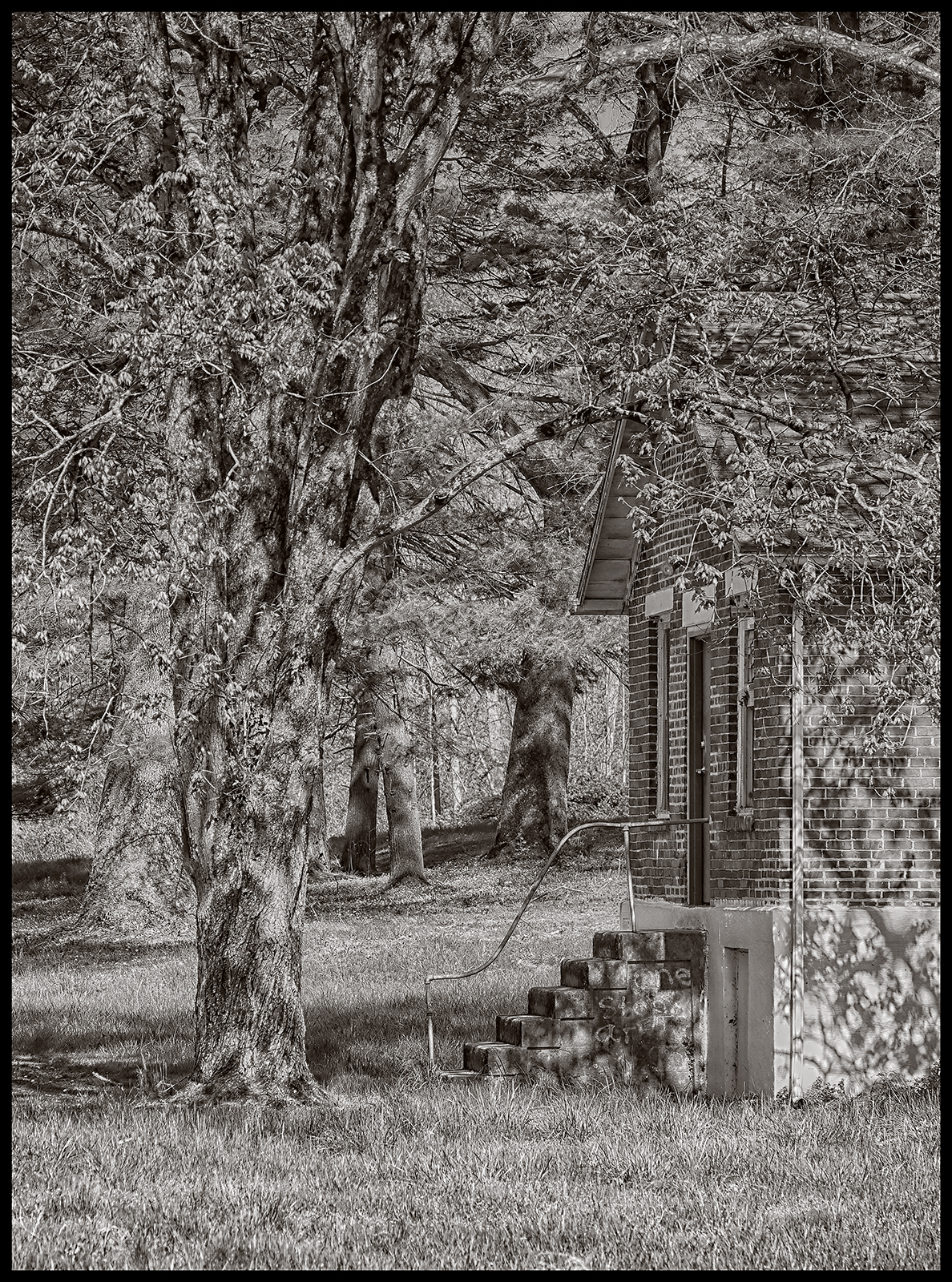 1901 one-room schoolhouse in the narrow valley of the creek: