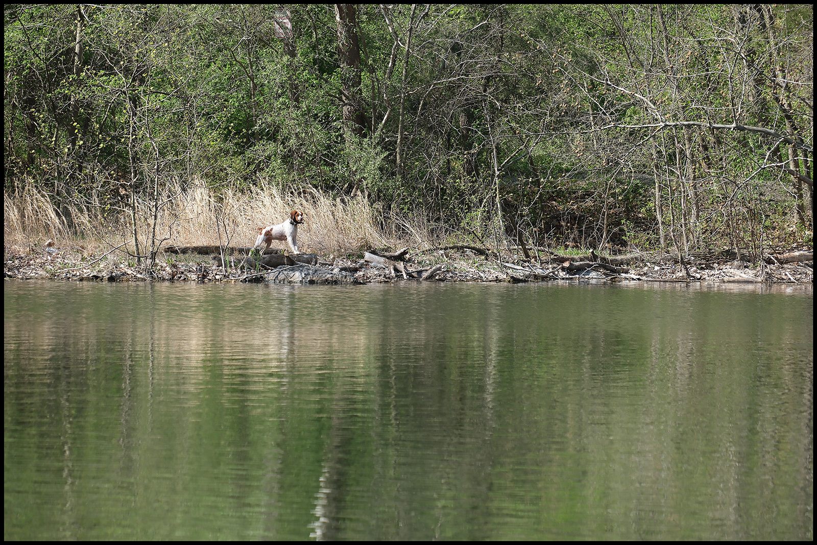 Now, the dogs have to laboriously swim the entire length of the lake again. Four or five passes like that and they are more than ready to quit. Good exercise was had by all, including the Old Folks. ☺️