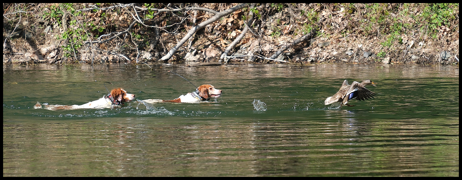 That said, it is way cool to watch how a mama duck will lead the dogs away from the babies.   She does a broken wing act and leads the dogs all the way to the far end of the lake from the ducklings.  She lets them get pretty close to her to keep them interested in her, but she knows they cannot even begin to catch her on the water (on land would be another matter).  Then, she simply files all the way back to the ducklings at the opposite end of the lake. Even though the dogs have been through this process countless times, they never seem to get the memo - they chase mama in the water, thinking that they are going to catch her at any moment, until she flies away and leave them wondering what the hell just happened.
