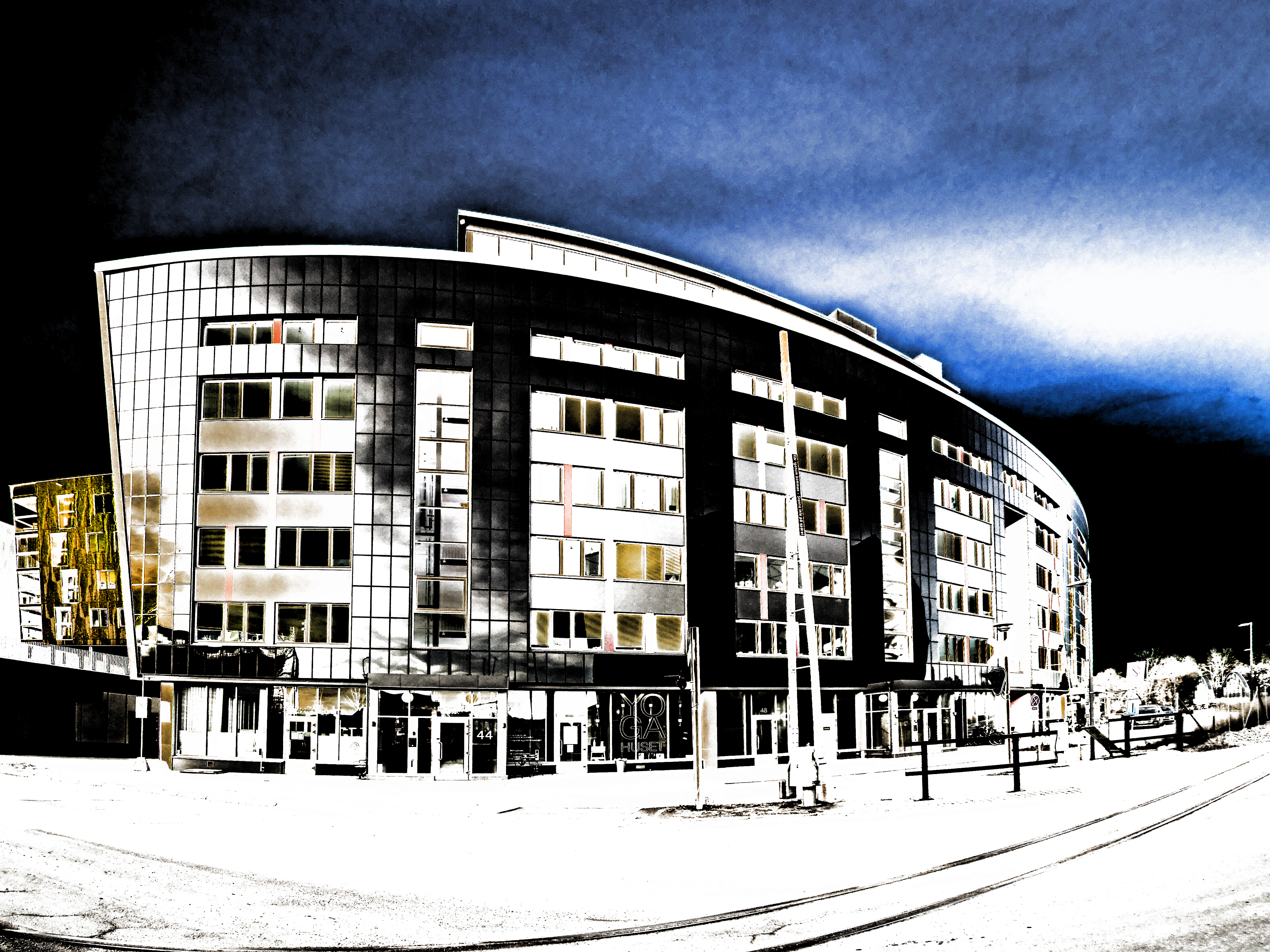 I actually like this more minimalist result from using HSL. But the right image is needed or it just becomes drab. Think it works for this monstrosity of a building.