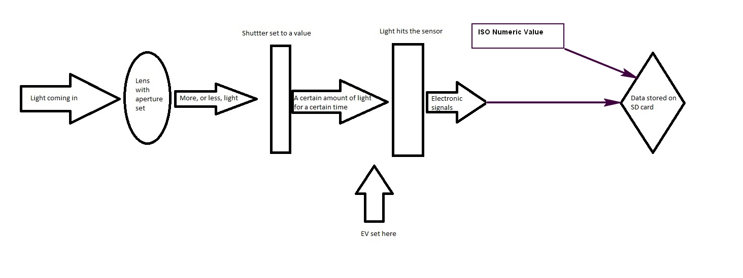 Photography exposure is fundamentally multiplicative: brightness is proportional to aperture area, shutter time, and ISO sensitivity. Since logs turn products into sums, a fixed-brightness condition becomes a linear constraint, which is exactly what planes represent in geometry.