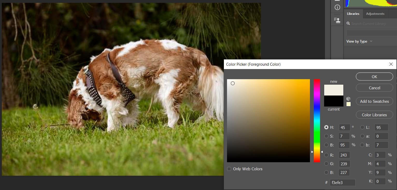 I can make the whites whatever colour you like so I don't see your point. I don't know how close to pure white the dog's fur was.