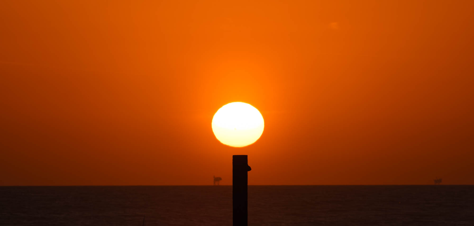 It would need some technical polishing to please anyone other than myself but it is still one of my favorites in a year of very limited opportunities due to medical issues. A fierce setting sun perched over a flagpole, Gulf Shores AL, with oil platforms looking to me like Star Wars walkers in the distance.
