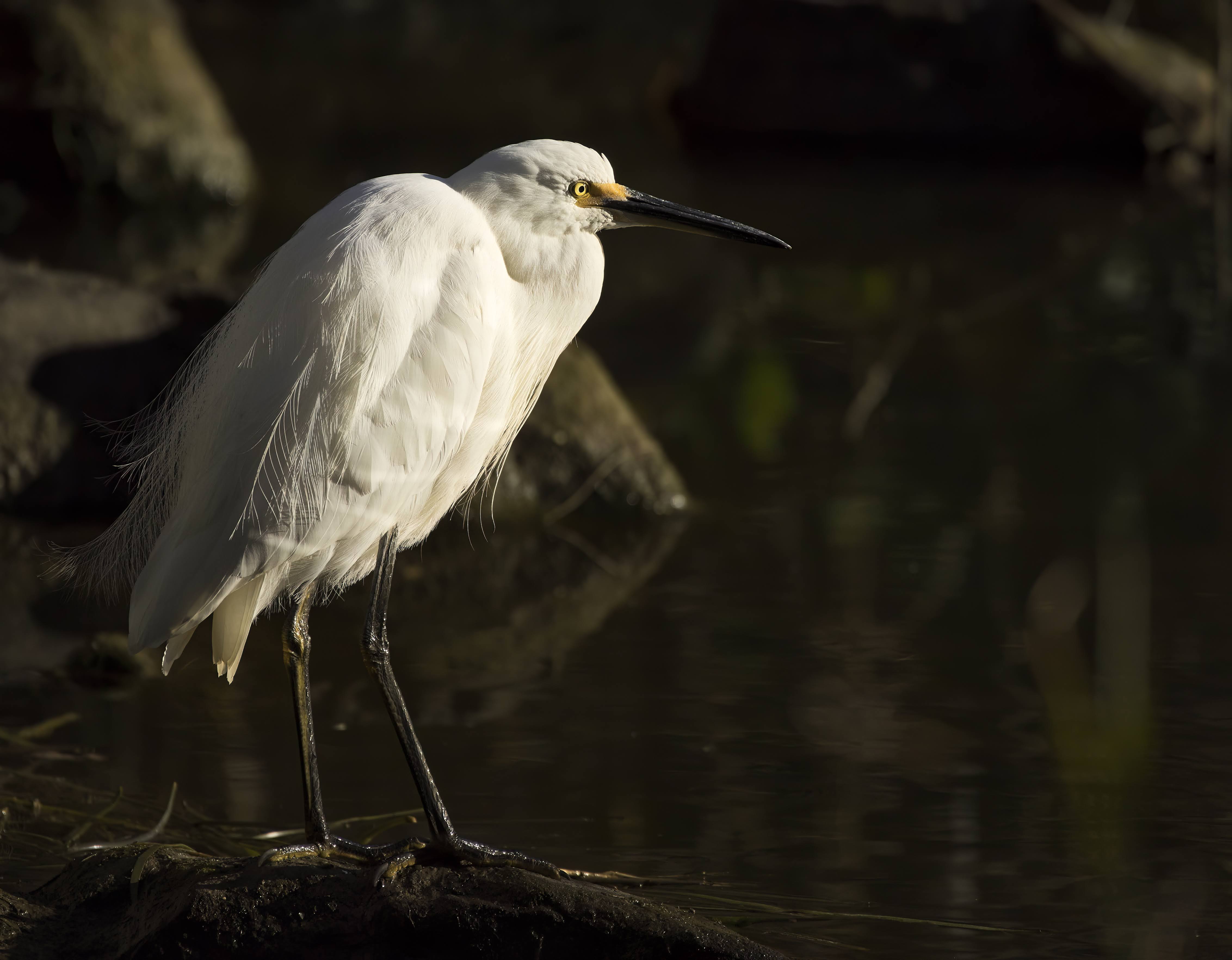 In the same are was an Intermediate Egret (I think that's the right name) with its yellow/brown beak and white feathers. The Little Egret was about two-thirds the size.