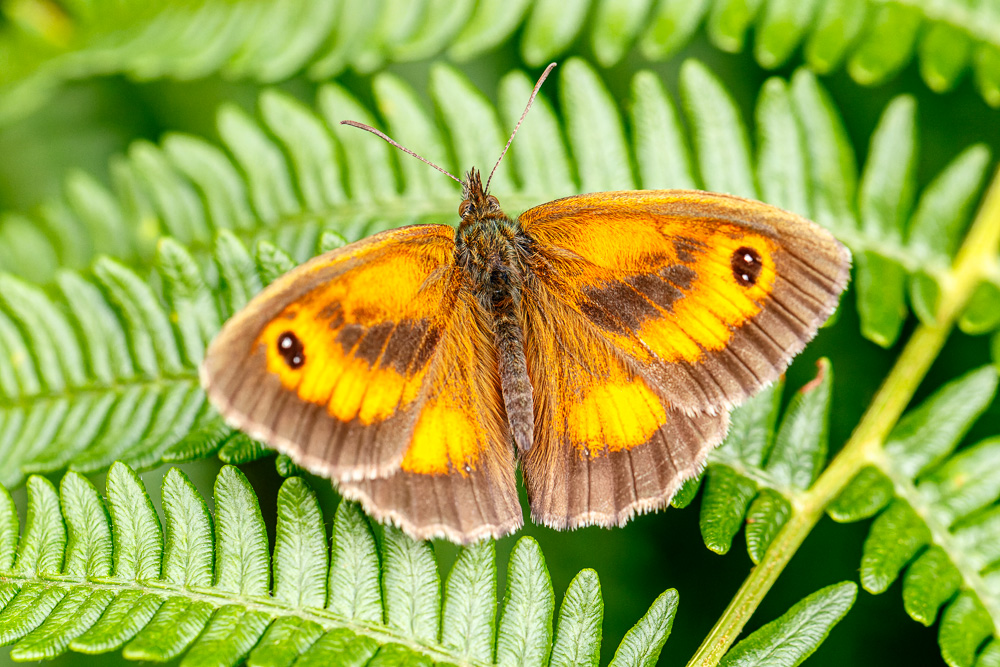 Butterflies galore. A Gatekeeper. (Aperture f/7.1 <> (SS): 1/500 <> ISO 3200 <> EC: 0 <> PASM Mode: Custom <> Metering: Partial <> Focus Mode: AI Servo <> FL: 90mm <> Lens: Tamron SP 90mm f/2.8 Di VC USD Macro <> Camera ID: Canon EOS 7D Mark II).