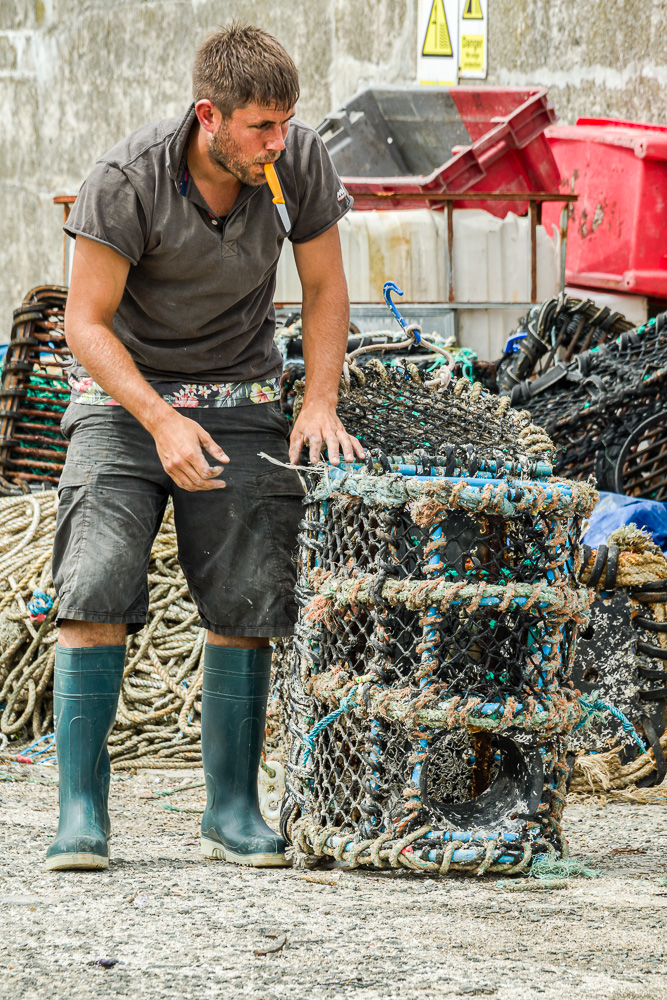 Fisherman repairing his Lobster pots. (Aperture f/9 <> (SS): 1/400 <> ISO 250 <> EC: 0 <> PASM Mode: Aperture Priority <> Metering: Evaluative <> Focus Mode: One Shot <> FL: 218mm <> Lens: Tamron SP 70-300mm f/4-5.6 Di VC USD <> Camera ID: Canon EOS 7D Mark II).