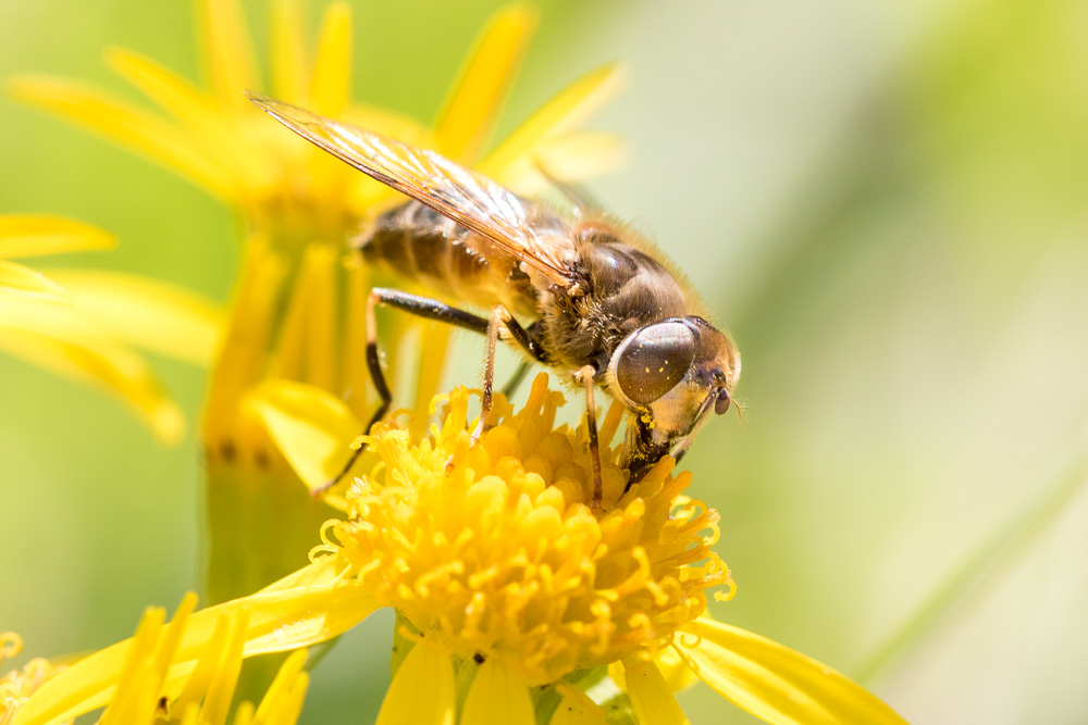 Bee doing its thing. (Aperture f/7.1 <> (SS): 1/250 <> ISO 125 <> EC: 0 <> PASM Mode: Manual <> Focus Mode: AI Servo <> FL: 90mm <> Lens: Tamron SP 90mm f/2.8 Di VC USD Macro <> Camera ID: Canon EOS 7D Mark II <> Notes: Evaluative metering used for initial start point).