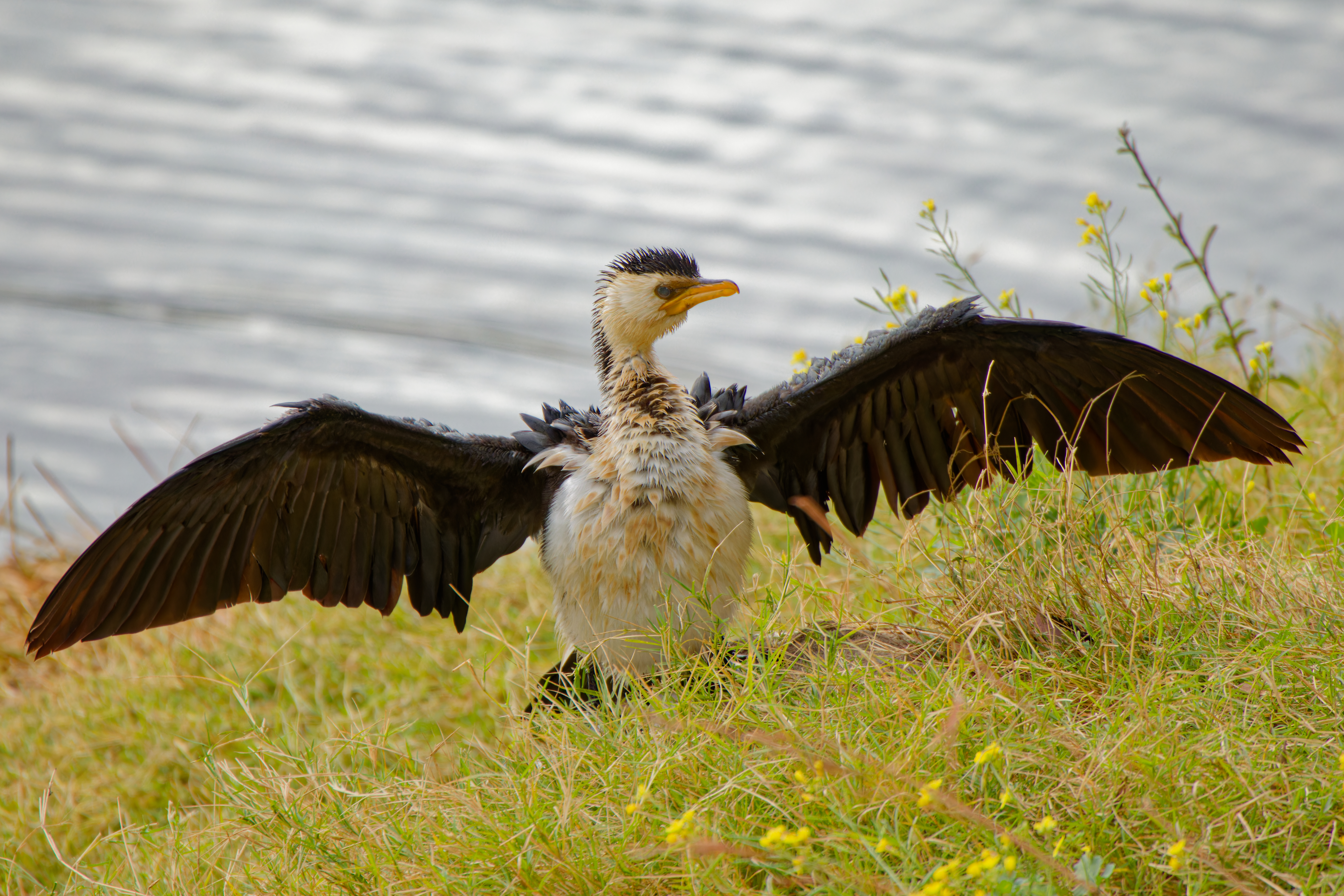 A Little Pied Cormorant drying its wings in the winter sun (it was a cloudy day actually so might've been there awhile)