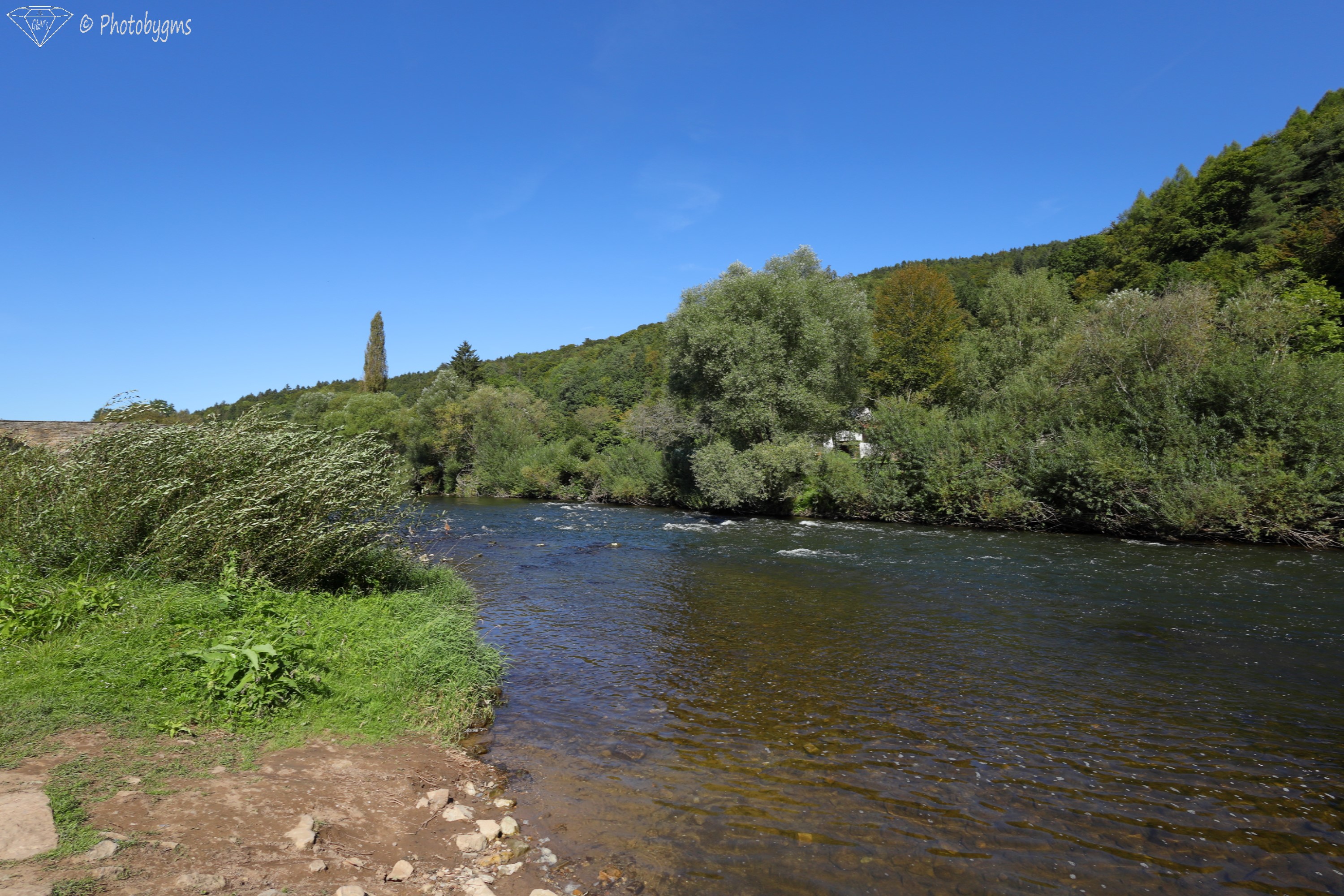 The Sauer/Sûre river, left river bank is Luxemburg, right river bank is Germany: