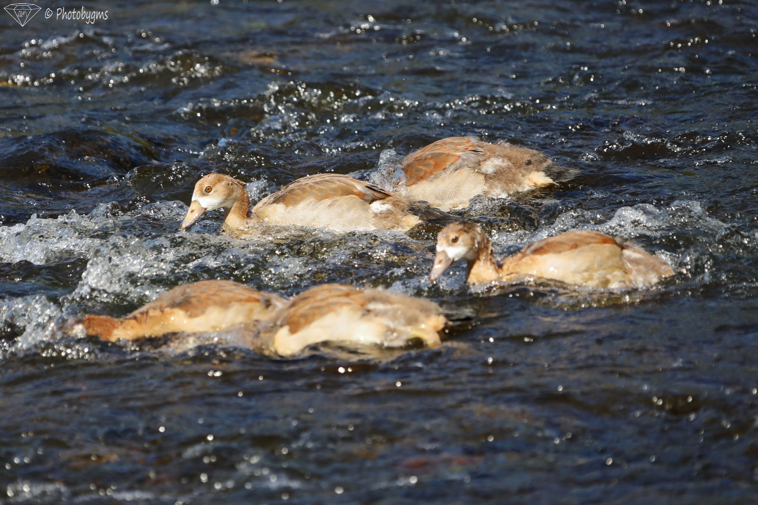 Spotted some Egyptian goose goslings, parents were close by and watching us watching them in the Sauer/Sûre river