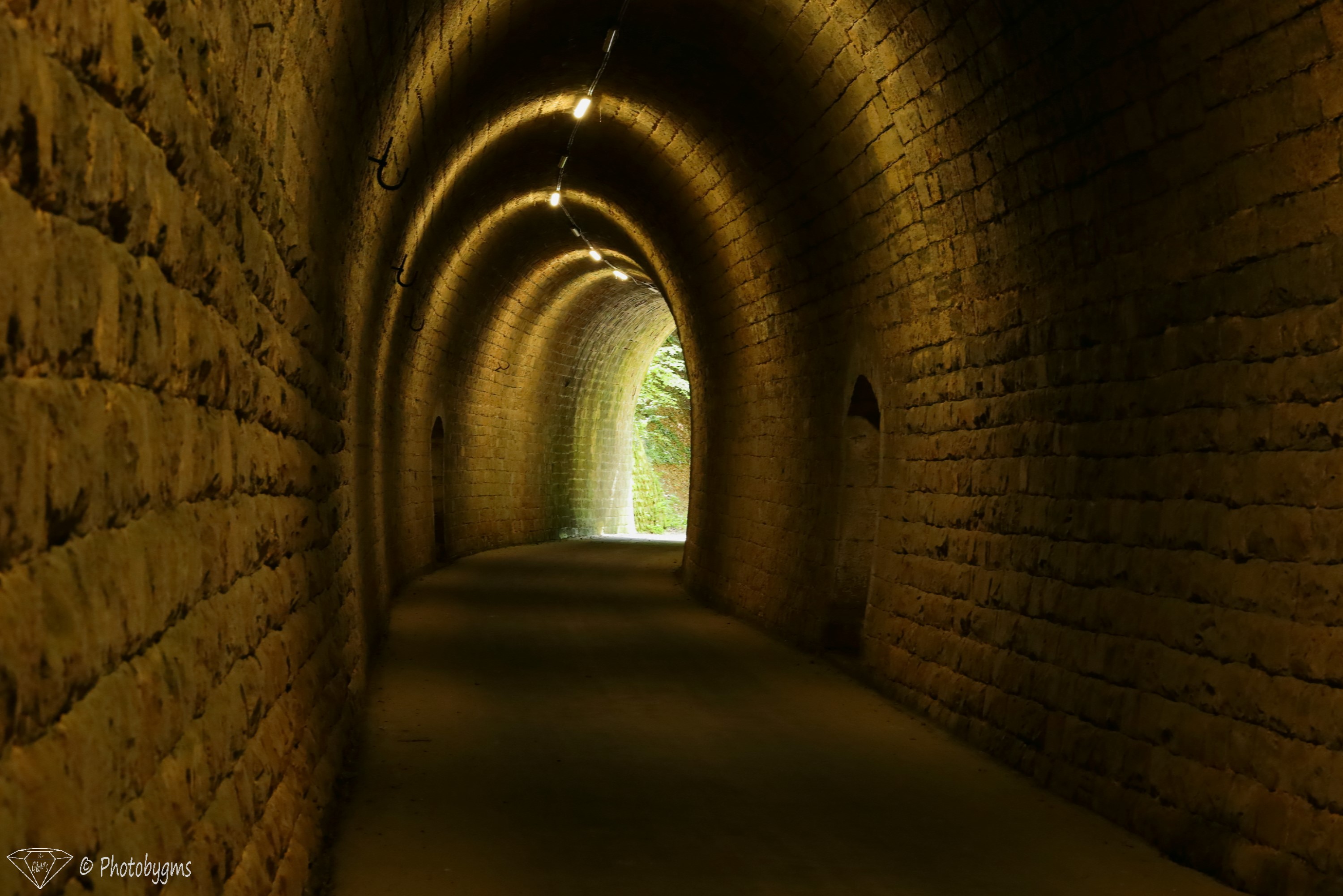 The tunnel above used to be a railroad tunnel for half a century until 1954 and was part of "Charly" a narrow-gauge railway line between Luxembourg (city) and Echternach nowadays it's a cycle path