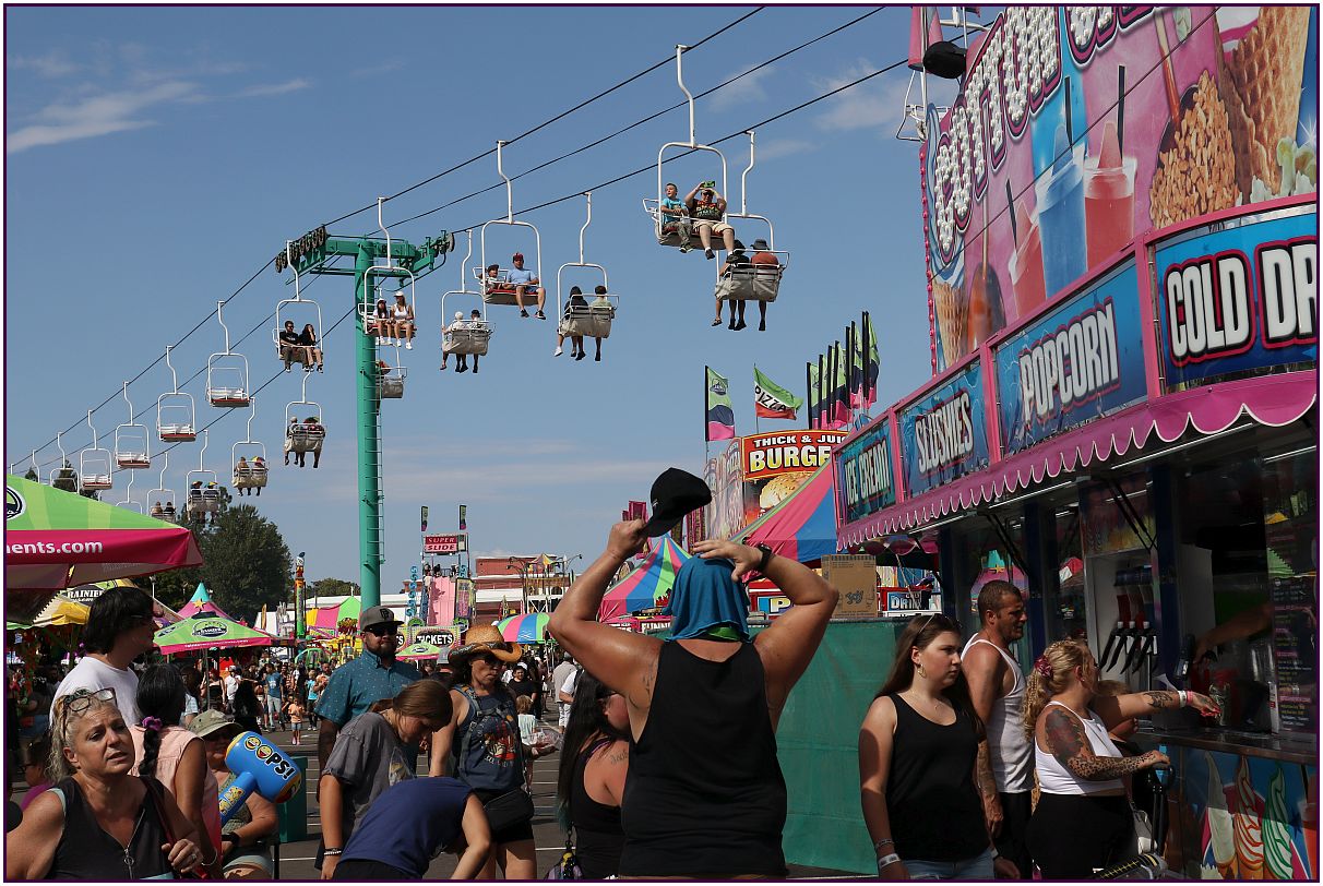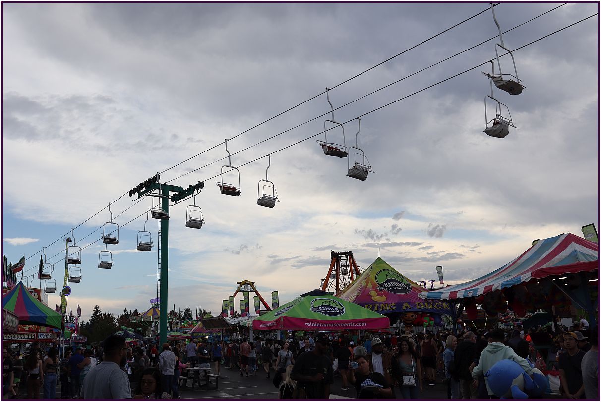 On the second day of September I went to the Oregon State Fair in Salem. It started out with some sunshine, but quickly changed to rain. There was some lightning which resulted in some of the rides being closed for a while. I hope you like this series.