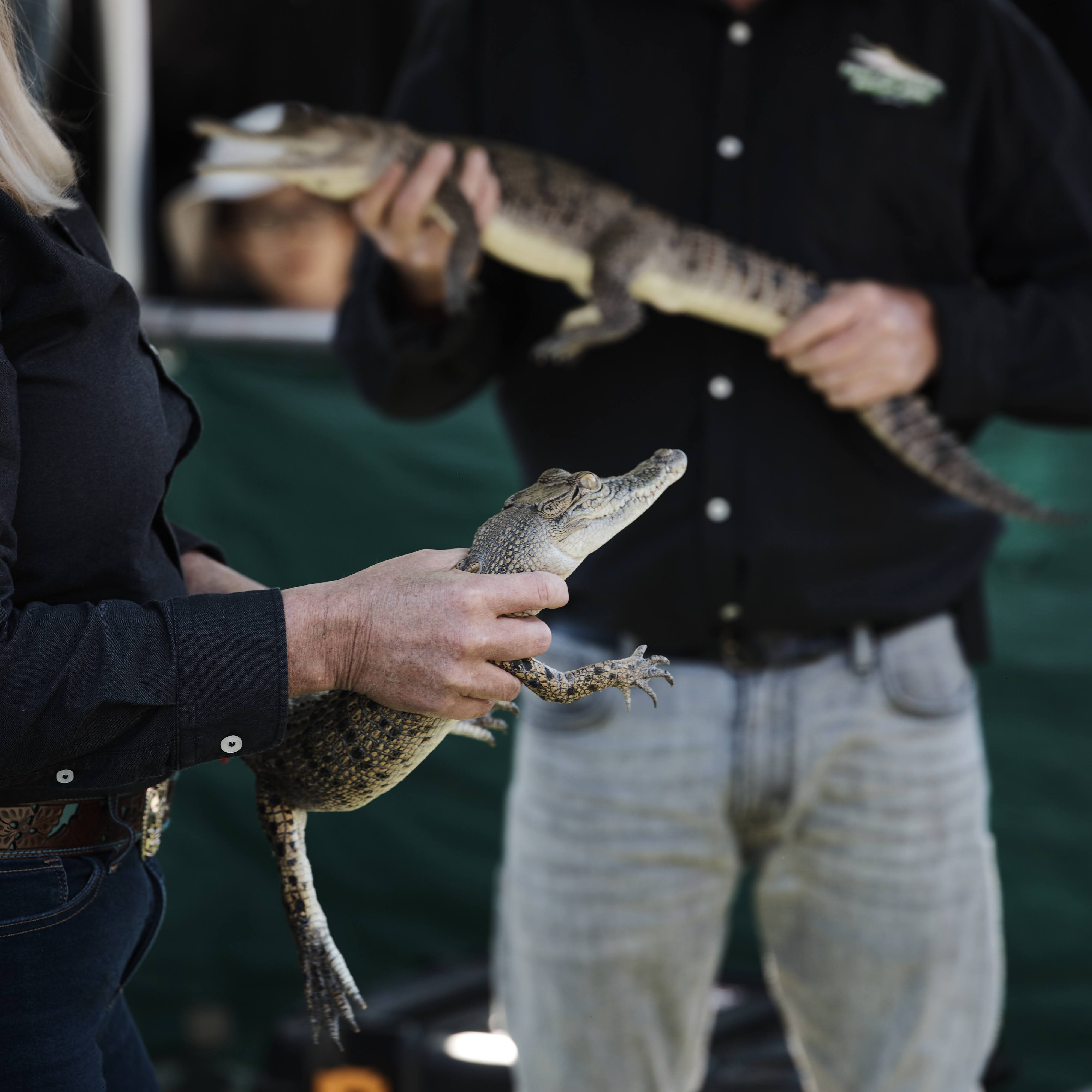 The first pic is a baby Salt Water Crocodile which have humans on their menu. The second pic is the Fresh Water Crocodile which has a long thin snout and won't attack humans unless you annoy them but they are also deadly.