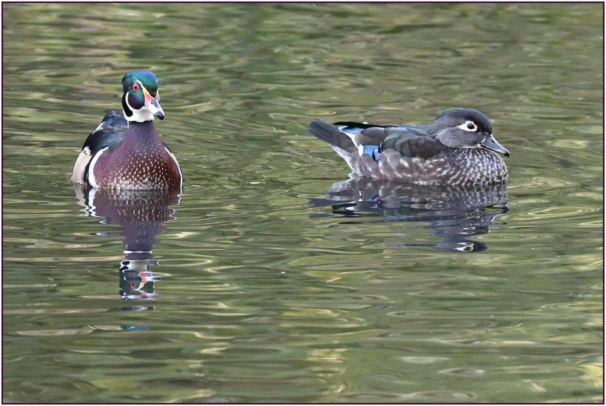 Photo No. 2 - I like it when I can get both the male and female Wood Duck in focus. There's no sunlight here.