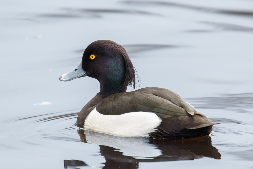 Male Tufted duck. (Aperture f/7.1 <> (SS): 1/1000 <> ISO 4000 <> EC: 0 <> PASM Mode: Custom <> Metering: Partial <> Focus Mode: AI Servo <> FL: 600mm <> Lens: Tamron SP 150-600mm f/5-6.3 Di VC USD <> Camera ID: Canon EOS 7D Mark II).
