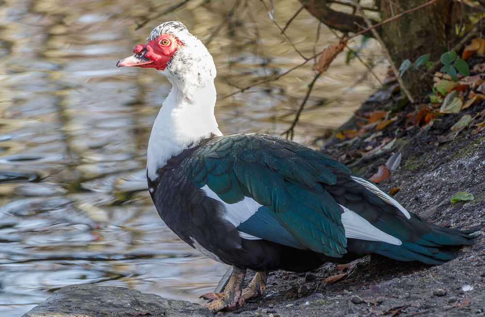 Muscovy duck, native of the Americas. (Aperture f/7.1 <> (SS): 1/500 <> ISO 1250 <> EC: 0 <> PASM Mode: Custom <> Metering: Partial <> Focus Mode: AI Servo <> FL: 249mm <> Lens: Tamron SP 150-600mm f/5-6.3 Di VC USD <> Camera ID: Canon EOS 7D Mark II).