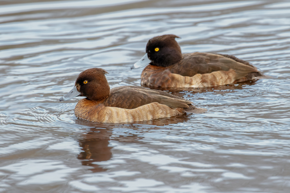 Female Tufted ducks. (Aperture f/7.1 <> (SS): 1/1000 <> ISO 4000 <> EC: 0 <> PASM Mode: Custom <> Metering: Partial <> Focus Mode: AI Servo <> FL: 600mm <> Lens: Tamron SP 150-600mm f/5-6.3 Di VC USD <> Camera ID: Canon EOS 7D Mark II).