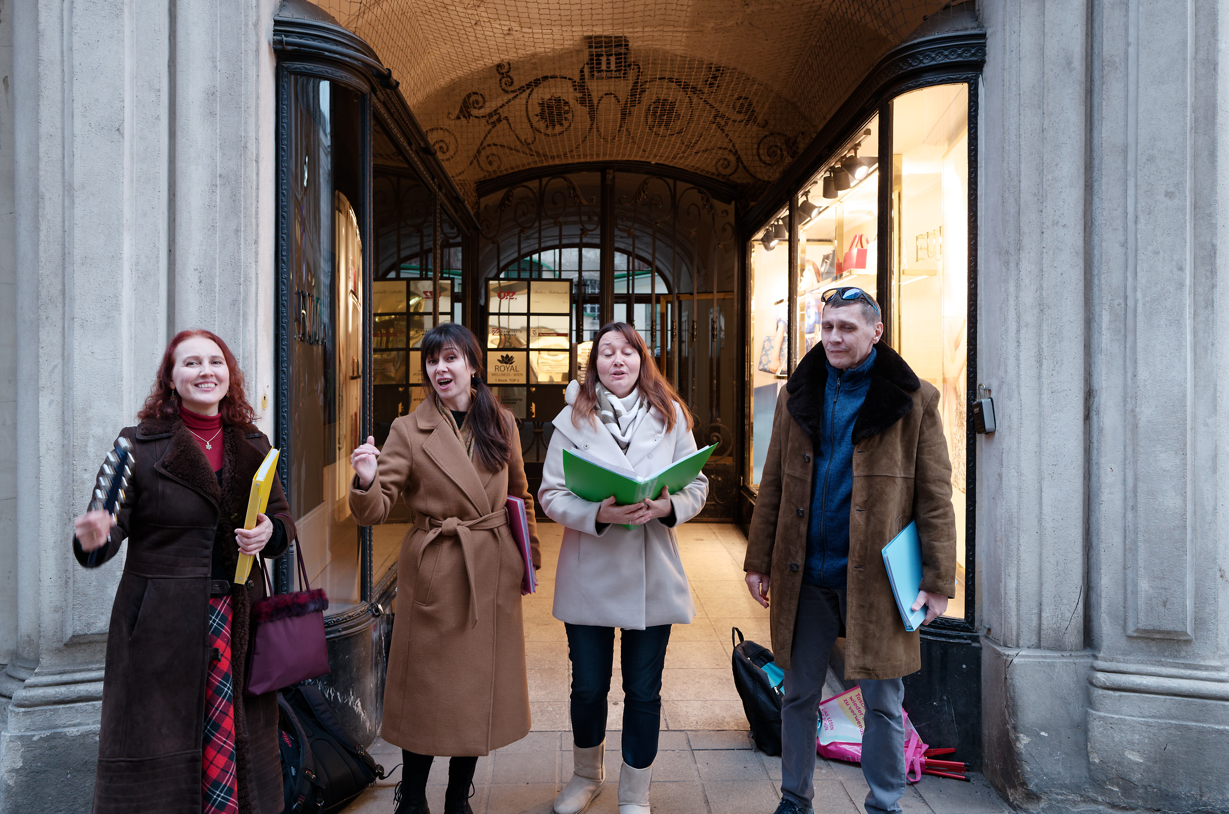 Next I came across carol singers. I havent seen this in the city before. I think they were from the Ukraine, as they were singing beautifully The Carol of the Bells, which comes from there. The lady on the left was playing the bells vigorously!