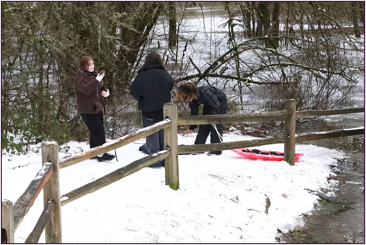 Steve had sprinklings of snow and starlings looking for food. He also shared his father and son tripods, which look quite study and stable. His remotely controlled photo of the desolate winter scene was suitably chilly.